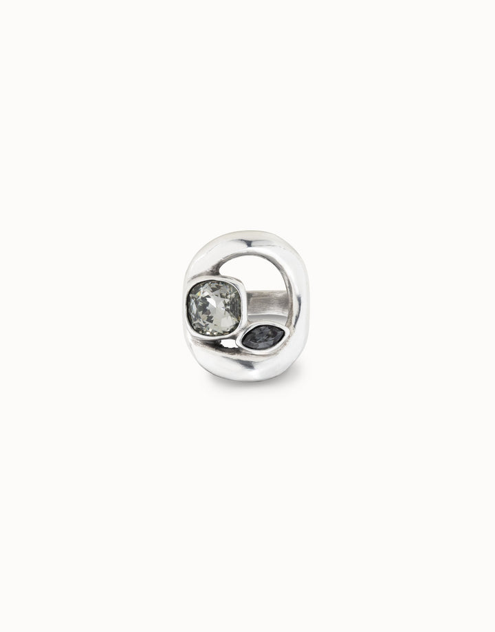 This Ring with Central Oval and Two Crystals by UNOde50 embodies refined elegance, gratitude, and meticulous craftsmanship. The sterling silver-plated band showcases a large central oval flanked by faceted greenish-gray and silver-gray crystals, reflecting the Grateful collection’s celebration of appreciation and mindfulness. Handcrafted in Spain, each piece merges symbolic meaning with luminous design. Suitable for stacking or as a standalone statement, the ring conveys sophistication, positive energy, and contemporary artistry, creating a versatile, meaningful accessory that resonates with both personal sentiment and timeless Spanish jewelry craftsmanship.