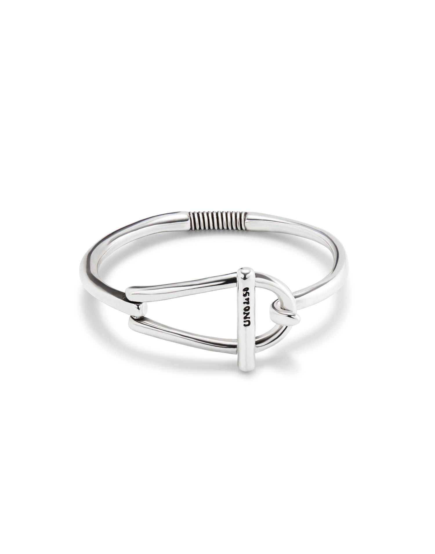 This Bangle Bracelet with Medium-Sized Link by UNOde50 is a rigid sterling silver-plated piece featuring mid-sized links and an inner spring. From the Youthful collection, it embodies the spirit of freedom, carefree energy, and the fluidity of life experiences. Handcrafted in Spain, each link reflects meticulous artisan craftsmanship. Perfect for daily wear or as a layered statement, the bracelet captures movement, modern elegance, and contemporary design, creating a versatile accessory that resonates with youthful vibrancy and Spanish handcrafted excellence.