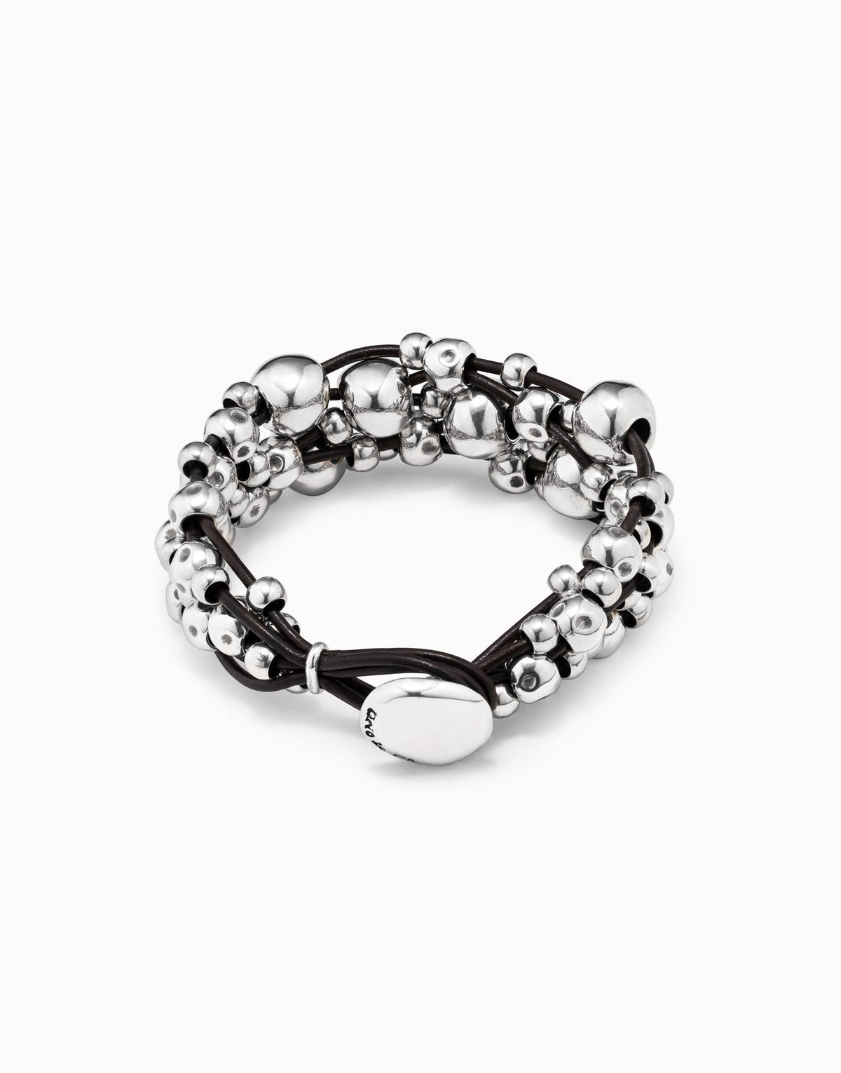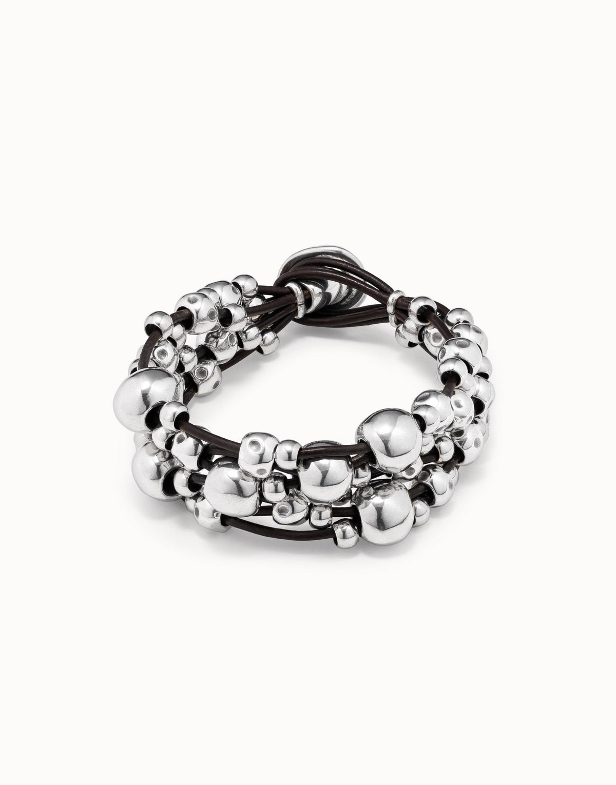 These Multi-Strand Beaded Leather Bracelets by UNOde50 celebrate artisanal craftsmanship and textural richness. Featuring triple brown leather straps adorned with pearl-shaped sterling silver-plated stones in varying sizes, this bracelet evokes a playful yet sophisticated charm. Handmade in Spain, the design conveys versatility, individuality, and tactile elegance, perfect for layering or worn as a statement piece. With a beret clasp that adds a subtle accent, it is ideal for those who embrace a bohemian, free-spirited style while appreciating high-quality handcrafted details that transform everyday jewelry into a meaningful expression of personality.