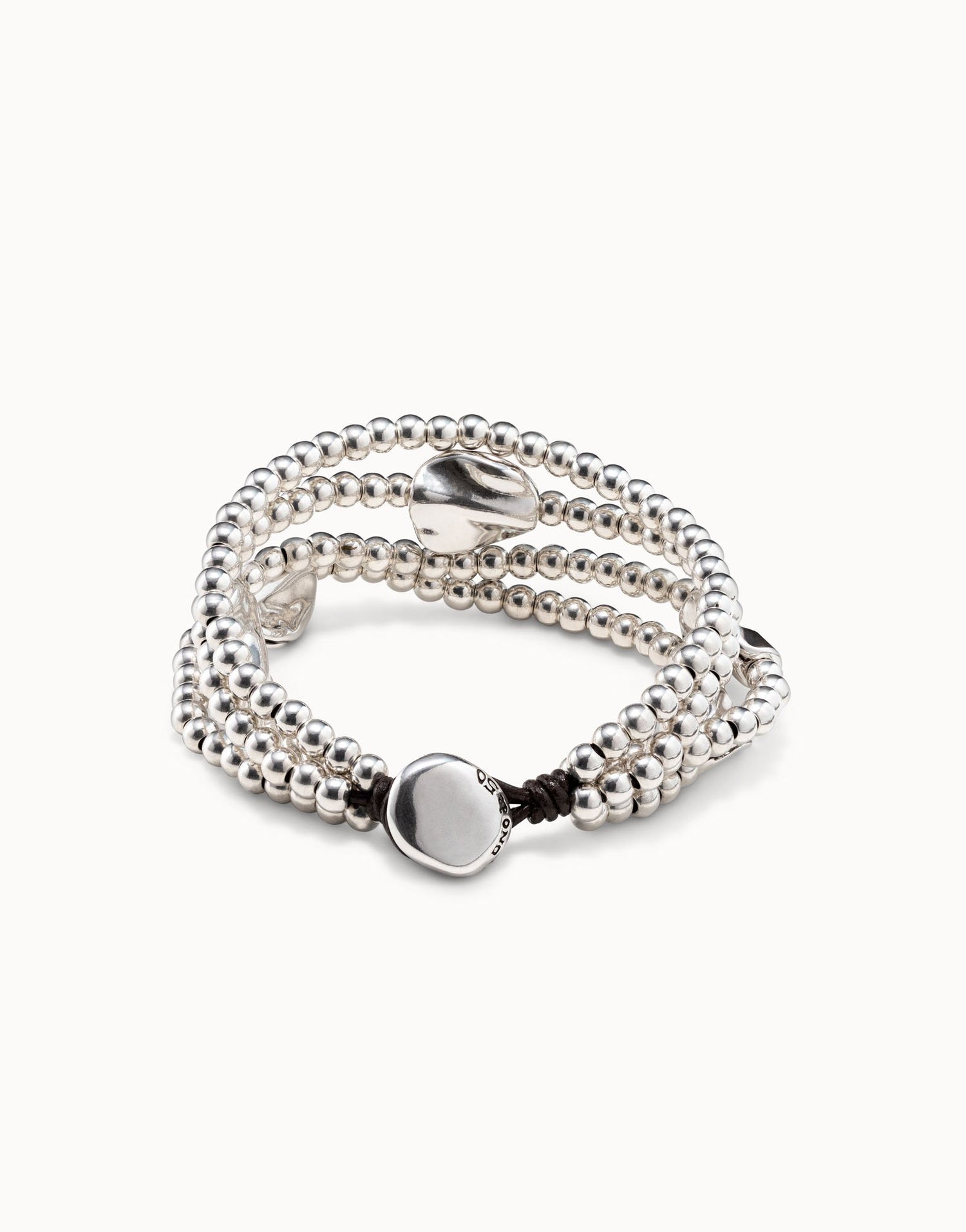 This Three-Strand Leather Beaded Bracelet by UNOde50 combines texture, artistry, and modern sophistication. Handcrafted in Spain, the sterling silver-plated design features multi-strand leather adorned with beads and accessories, creating a layered, tactile aesthetic. Symbolizing individuality, creativity, and elegance, it is perfect for stacking or wearing as a standalone statement piece. Its medium-length fit ensures comfort while highlighting artisanal quality and contemporary design, offering a versatile, fashionable accessory that merges classic leather elements with high-end jewelry craftsmanship.