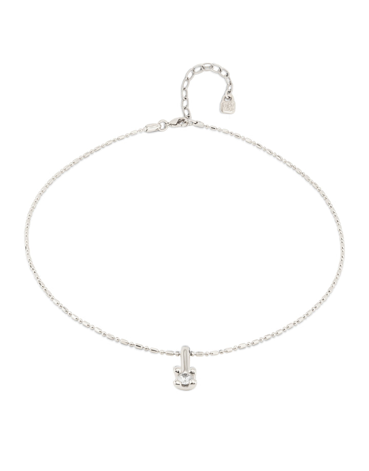 Sterling silver-plated metal alloy with central white cubic zirconia, bead size 2.5 cm, short length, minimum length 40 cm, maximum length 45 cm.