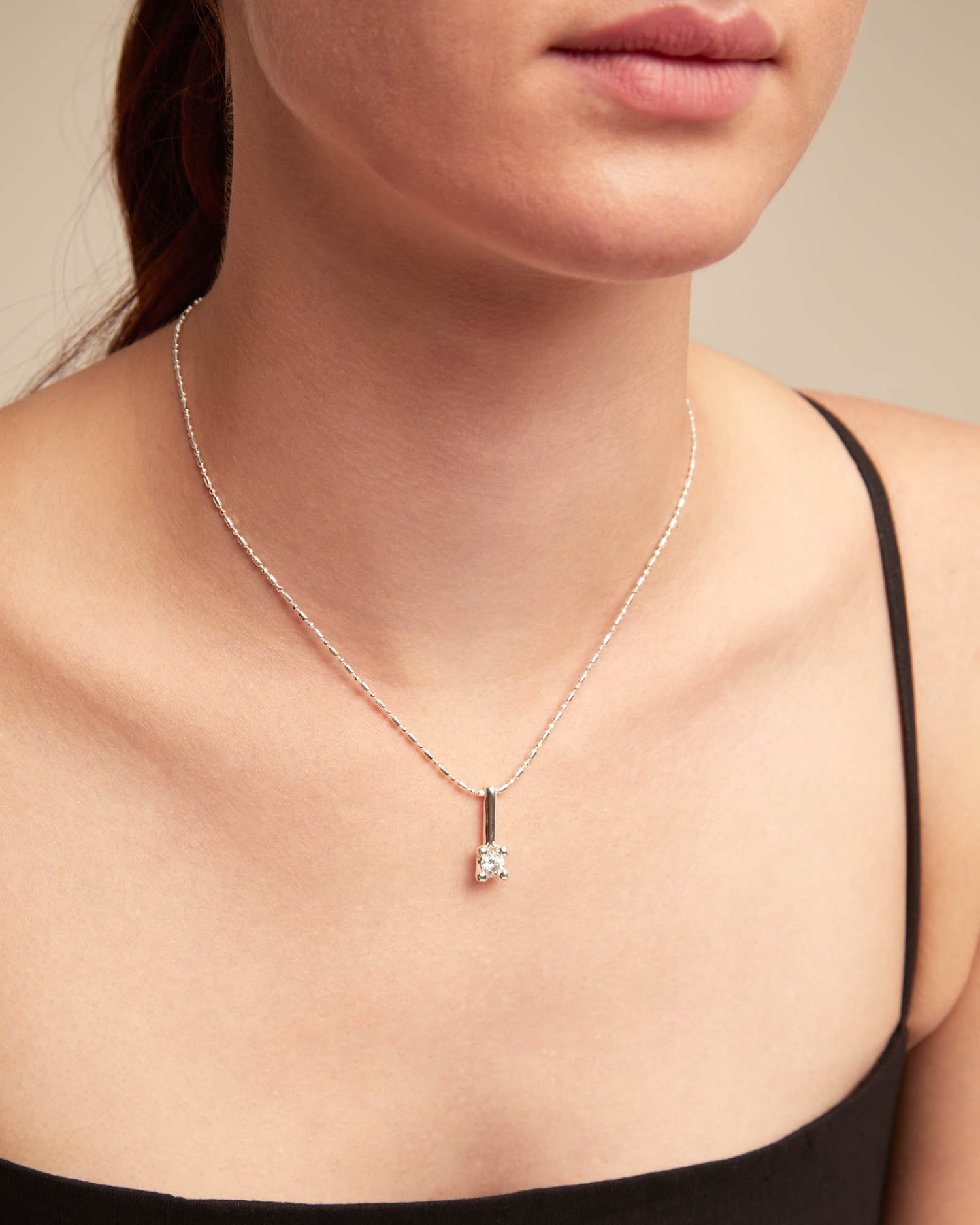 This Short Chain Necklace with White Cubic Zirconia by UNOde50 is a refined expression of spiritual elegance. Handcrafted in Spain from sterling silver-plated metal alloy, the central white zirconia symbolizes purity, introspection, and connection to the cosmos. Part of the Spiritual collection, it represents inner calm, feminine energy, and freedom of the soul. The large claws emphasize the crystal’s significance, reflecting light beautifully. Perfect for layering or as a statement piece, this necklace merges artisanal craftsmanship with symbolic meaning, offering a modern, polished accessory that enhances both everyday and formal ensembles with grace and serenity.