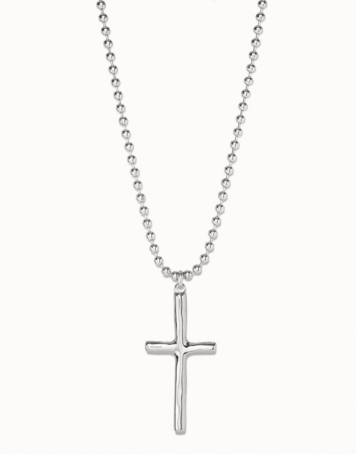 This Necklace Faith by UNOde50 is a powerful emblem of devotion and contemporary style. Handcrafted in Spain from sterling silver-plated metal, the long chain concludes with a distinctive cross-shaped pendant, embodying faith, elegance, and spiritual symbolism. Adjustable with a clasp, the necklace allows versatile wear and layering with other pieces from the Fearless collection. With polished tubular links and a balanced design, it reflects artisanal craftsmanship, modern aesthetics, and meaningful expression. Perfect for statement or everyday wear, this necklace exudes both style and symbolic presence.