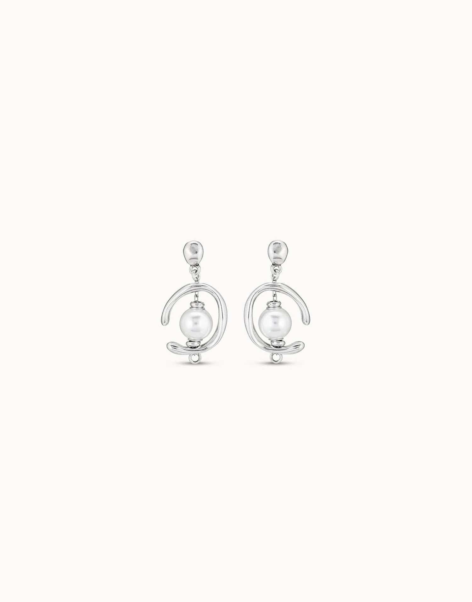 Sterling silver-plated metal with central shell pearl, drop earrings, minimum length 4.4 cm.