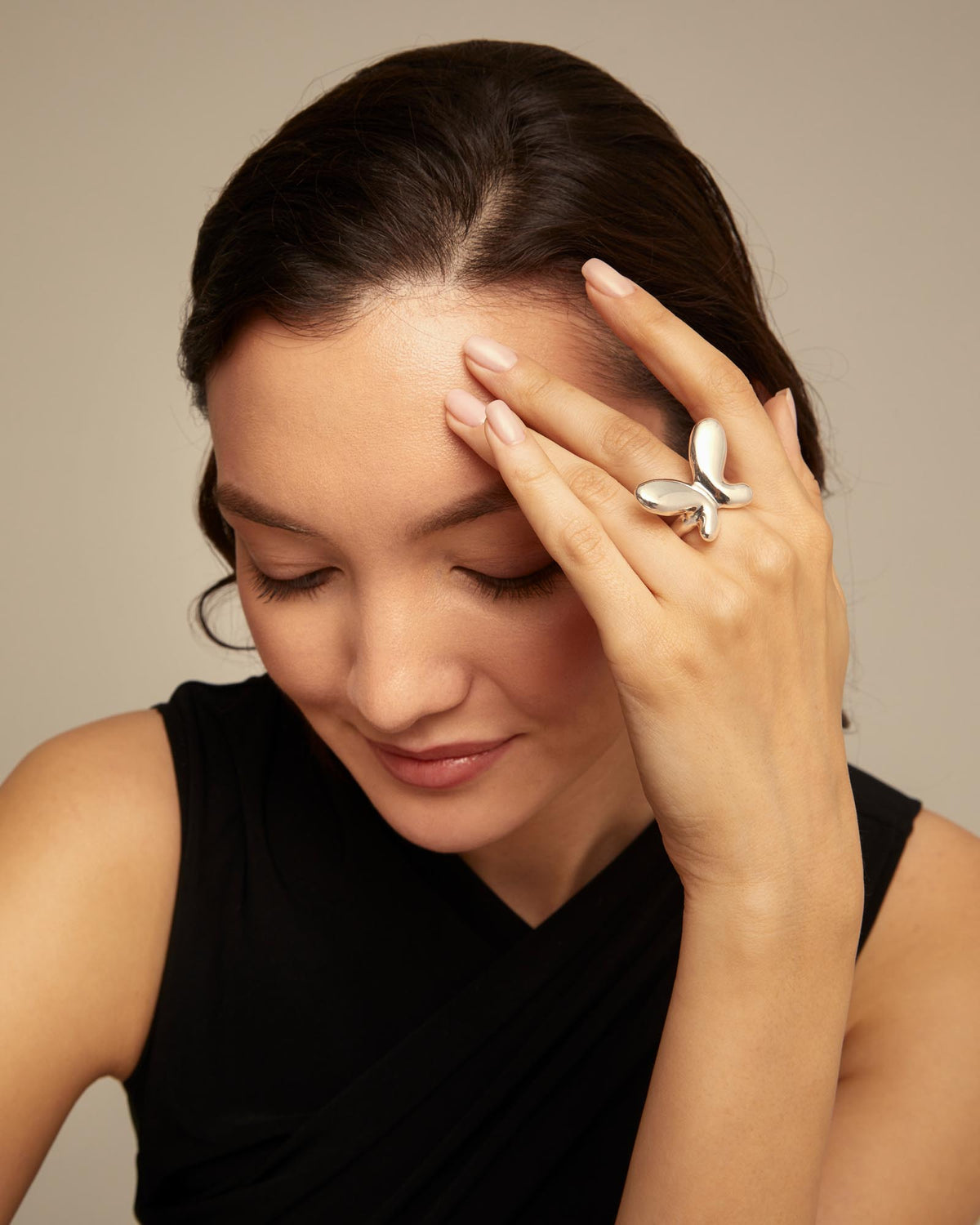 This Ring with Medium Butterfly Shape by UNOde50 embodies grace, freedom, and contemporary sophistication. Handcrafted in Spain from sterling silver-plated metal, its central mid-sized butterfly evokes nature, transformation, and elegance. Part of the Free collection, the ring is ideal for stacking or worn alone, reflecting artisanal precision and modern design. With polished detail and expressive form, it serves as a versatile statement piece that conveys individuality, refined craftsmanship, and a whimsical connection to nature.