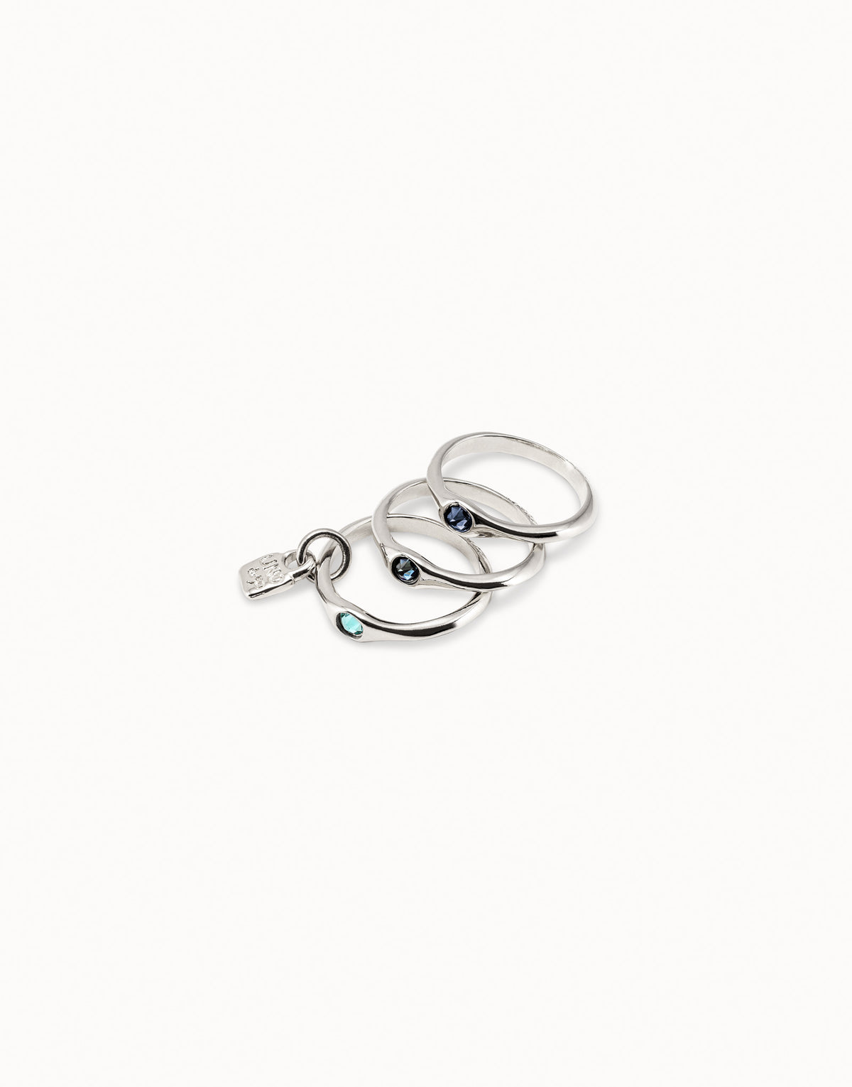 This Triple Ring with Red Crystals by UNOde50 is a compact, striking piece of artisanal excellence. Handcrafted in Spain from sterling silver-plated metal, three blue Swarovski crystals are set on a triple-band design, reflecting light and expressive energy. Ideal for stacking or worn alone, the ring merges contemporary sophistication with high-quality craftsmanship. It embodies bold elegance, versatility, and modern style, making it a polished and meaningful accessory that enhances any outfit with luminous, refined jewelry artistry.