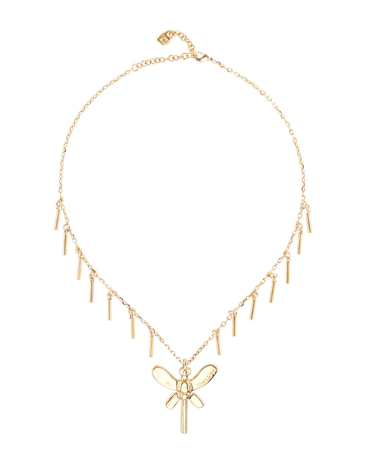 18K gold-plated metal, short necklace with multiple pendants and central butterfly, maximum length 16.5 cm, minimum length 14 cm.