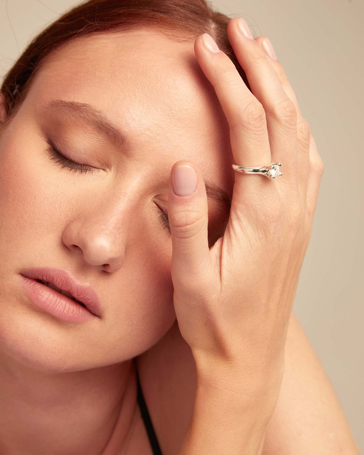 This Ring with White Cubic Zirconia by UNOde50 reflects mindfulness, elegance, and expressive design. Handcrafted in Spain from sterling silver-plated metal, the solitaire white zirconia embodies serenity, introspection, and the feminine spirit. Part of the Spiritual collection, it can be worn stacked or alone, combining contemporary style with polished artisanal craftsmanship. The luminous finish enhances its refined aesthetic, creating a versatile, high-quality accessory that conveys both symbolic meaning and modern sophistication, perfect for those seeking spiritually inspired jewelry with a contemporary edge.