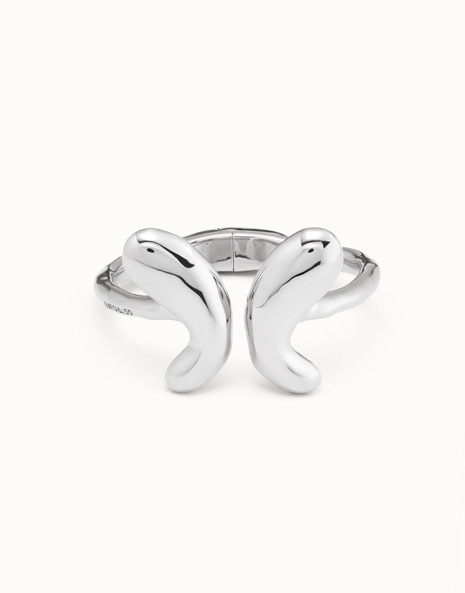 This Bangle Bracelet with a Central Butterfly by UNOde50 blends delicate artistry with contemporary charm. Handcrafted in Spain from sterling silver-plated metal, the semi-open design incorporates a central butterfly motif with wings at each end and a functional inner spring. Part of the Free collection, it evokes freedom, natural inspiration, and refined elegance. Perfect for stacking or wearing alone, this bracelet merges polished craftsmanship with symbolic meaning, creating a versatile, high-quality accessory that embodies the UNOde50 signature of modern, expressive, and wearable artistry.