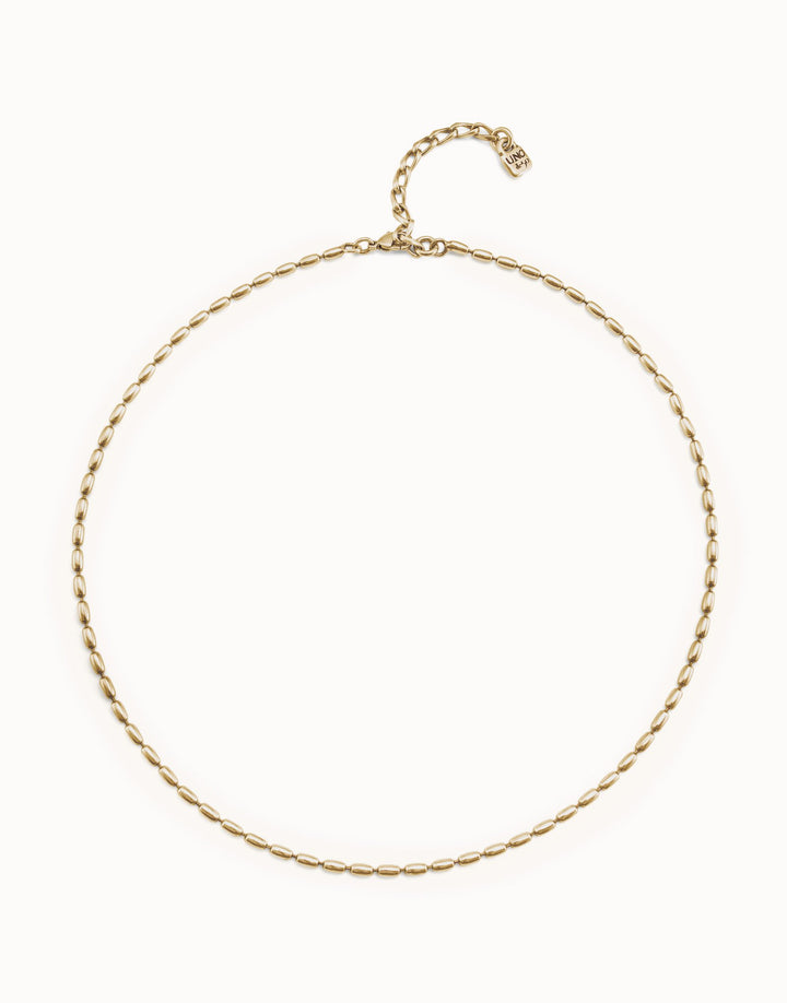 This Short Oval Link Chain Necklace by UNOde50 is a refined, minimalist piece that exudes elegance. Handcrafted in Spain from 18K gold-plated metal, the necklace features delicate thin oval links and an adjustable carabiner clasp for versatile styling. Its polished finish reflects light beautifully, enhancing its contemporary aesthetic. Perfect for layering or worn alone, it embodies artisanal craftsmanship and subtle sophistication, offering a luxurious accessory that complements everyday or formal outfits while showcasing UNOde50’s signature attention to detail and handcrafted excellence.