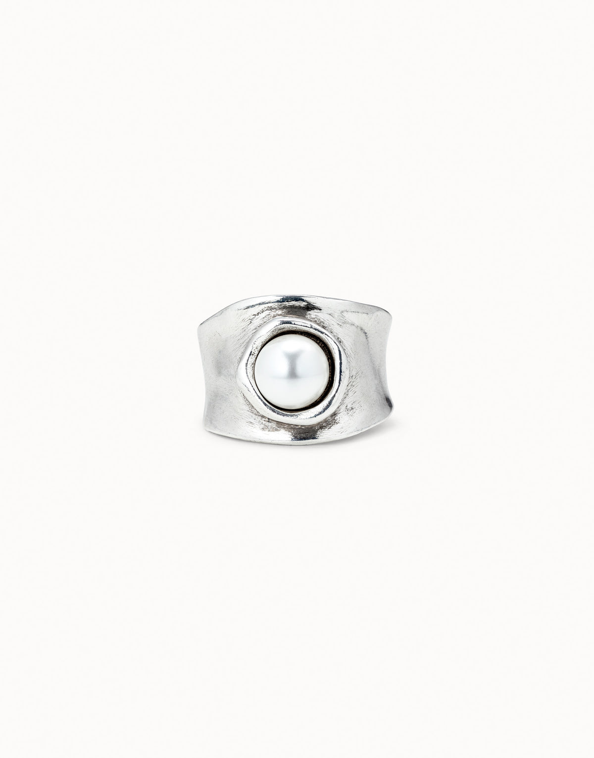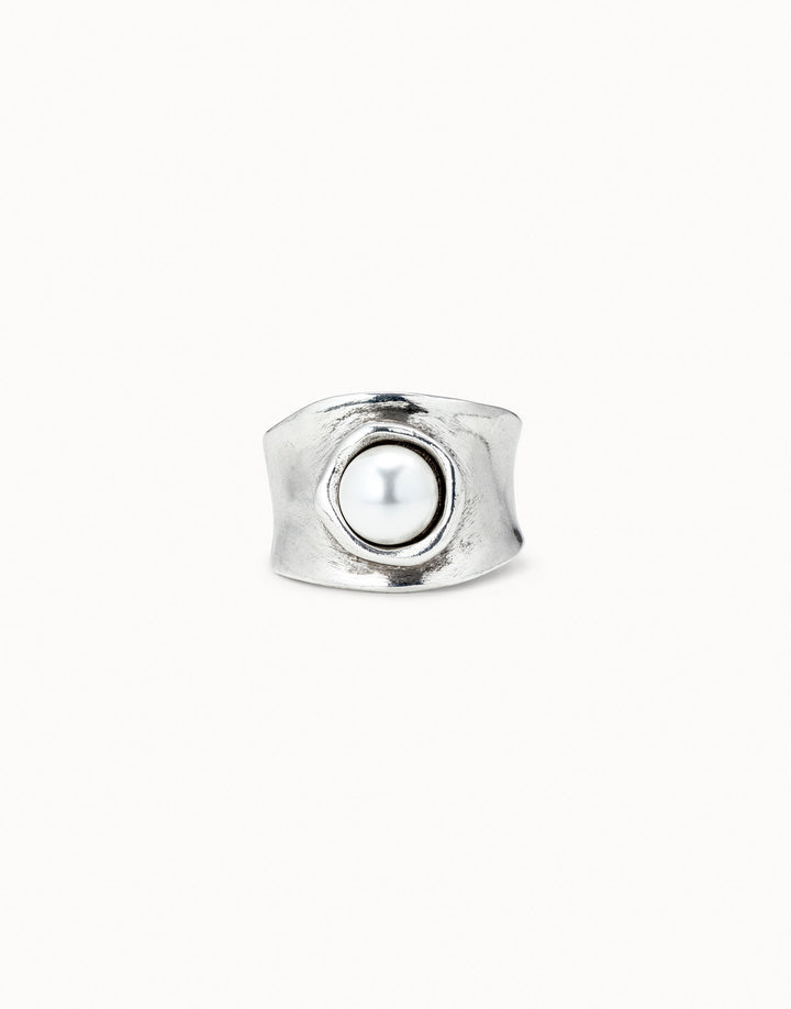 This Ring with Pearl by UNOde50 is a sparkling and elegant handcrafted piece. Made in Spain from sterling silver-plated metal, it features a central pearly SWAROVSKI® ELEMENTS crystal, merging timeless elegance with refined artisanal quality. Ideal for stacking or worn alone, the ring reflects contemporary sophistication and high-quality hand-finished detail, offering a versatile accessory that enhances both casual and formal ensembles with UNOde50’s signature expressive design.
