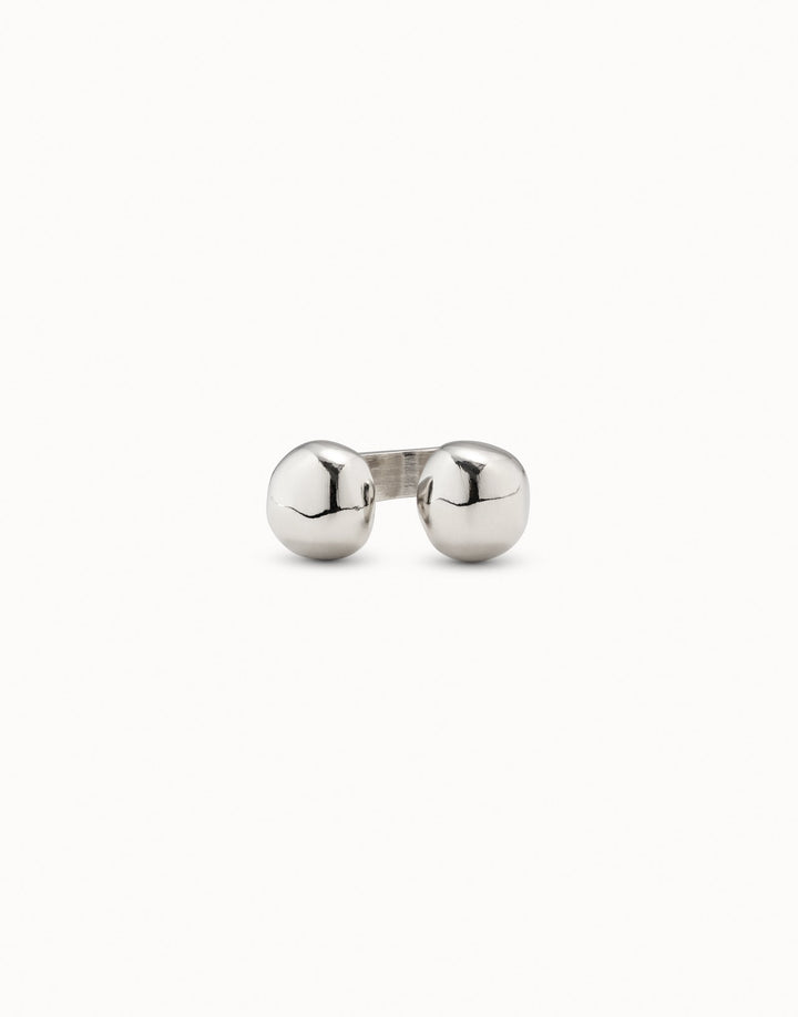 This Open Ring with Two Beads by UNOde50 is a minimalist yet expressive piece. Handcrafted in Spain from sterling silver-plated metal, the open center features two polished spheres, creating a contemporary design with clean lines. Ideal for stacking or solo wear, the ring combines polished craftsmanship with modern elegance, reflecting UNOde50’s signature hand-finished artistry and versatility for everyday or special occasion styling.