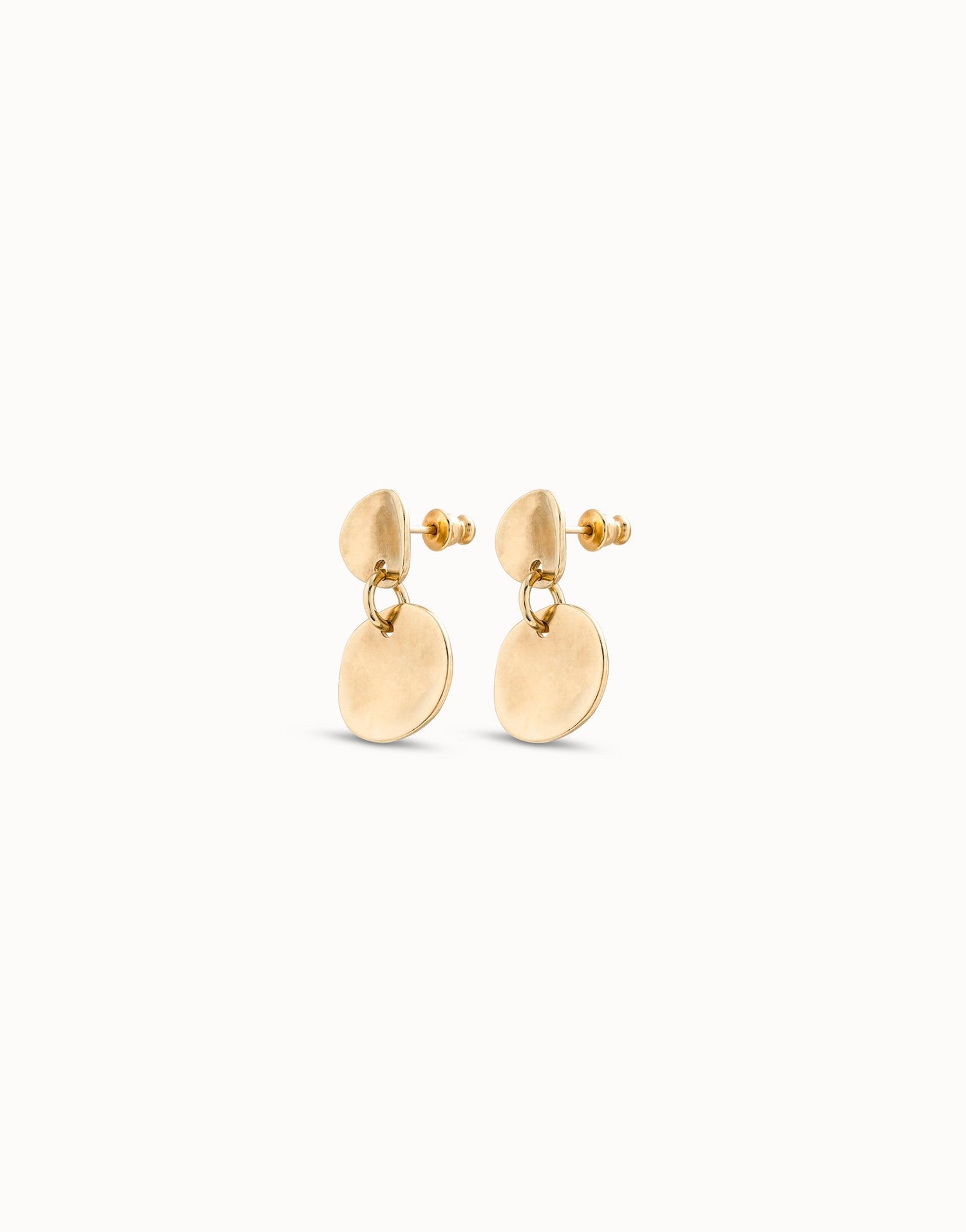 These Circle Drop Earrings by UNOde50 are sophisticated, handcrafted 18K gold-plated earrings featuring two irregular rounded shapes joined by a small ring. Made in Spain, the design embodies the brand’s unmistakable artisanal style and contemporary elegance. Perfect for elevating any outfit, these earrings combine polished craftsmanship with modern expression, making them a versatile addition to a luxury jewelry collection.