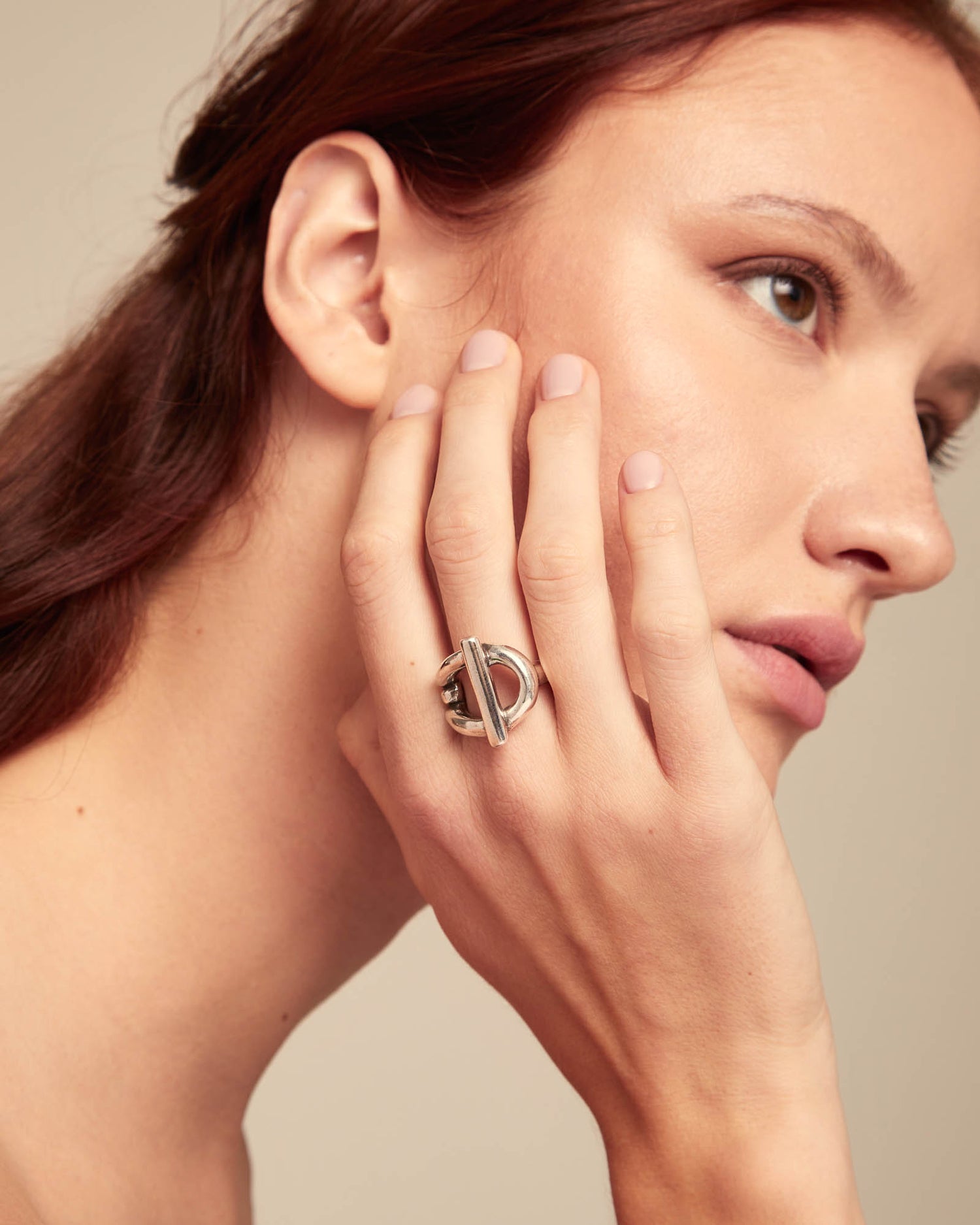 This Link Shaped Ring by UNOde50 is a handcrafted sterling silver-plated piece from the Youthful collection. Inspired by freedom and carefree individuality, the interlinked design evokes movement and connection with links of varying sizes. Perfect for stacking or as a standalone statement, the ring reflects UNOde50’s signature blend of artisanal craftsmanship and modern design, creating a polished, expressive piece that complements a variety of styles and occasions.