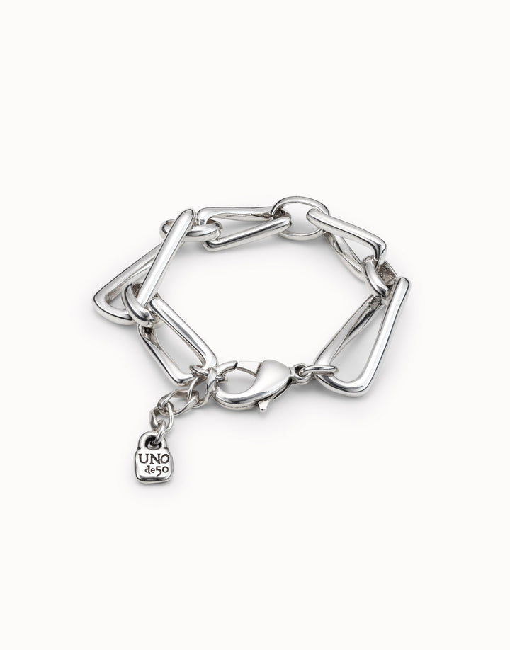 These Indestructible Bracelets by UNOde50 embody strength and sophistication with their dual-sized squared links, creating a bold yet elegant statement. Perfect for those who value resilience and artisanal craftsmanship, each piece is 100% handmade in Spain, reflecting UNOde50’s dedication to distinctive, high-quality design. The lobster clasp ensures adjustable fit, making it versatile for any occasion, while the interplay of link sizes conveys confidence and individuality. Ideal for layering with other bracelets or wearing alone, it exudes a timeless modernity that complements both casual and formal attire.