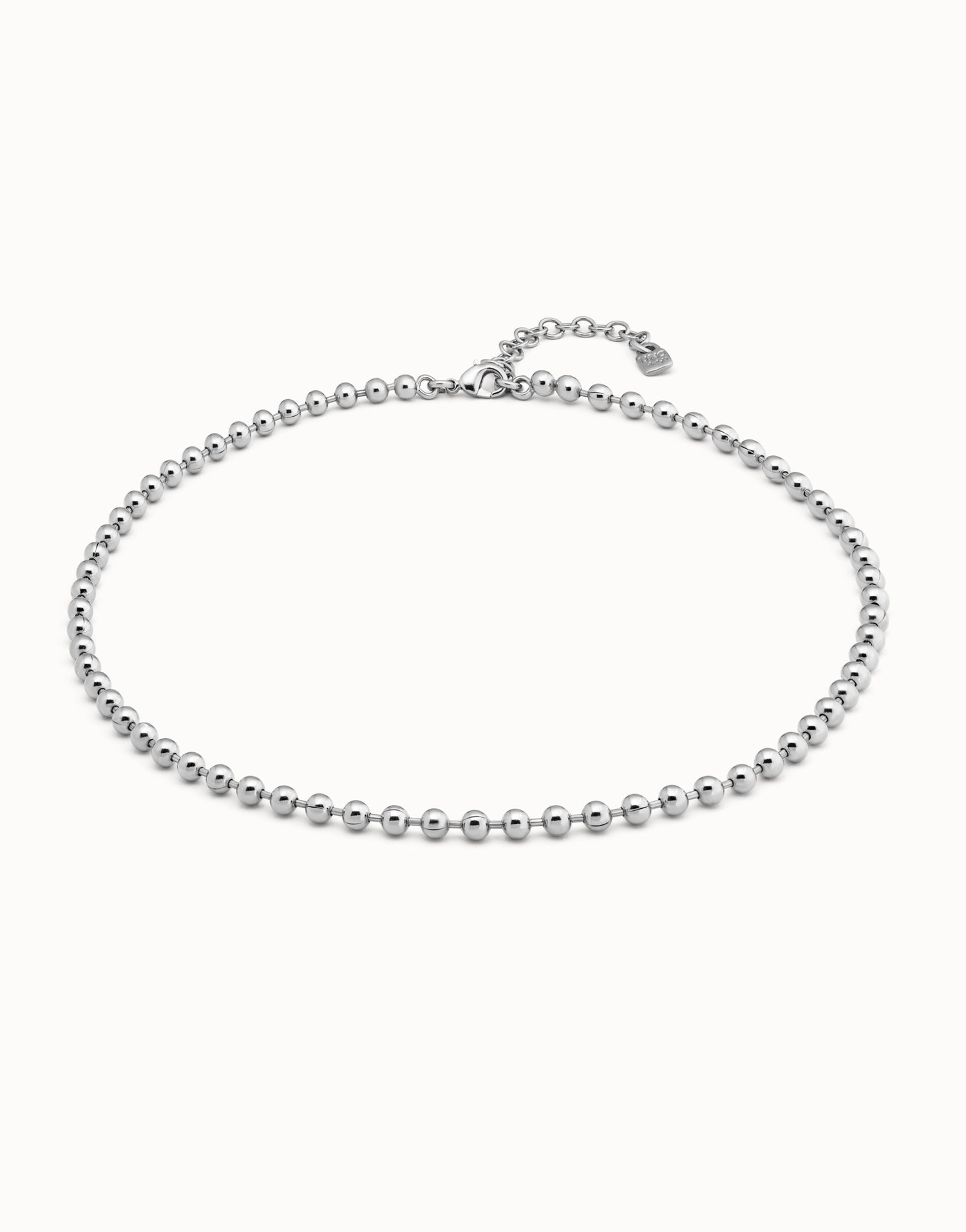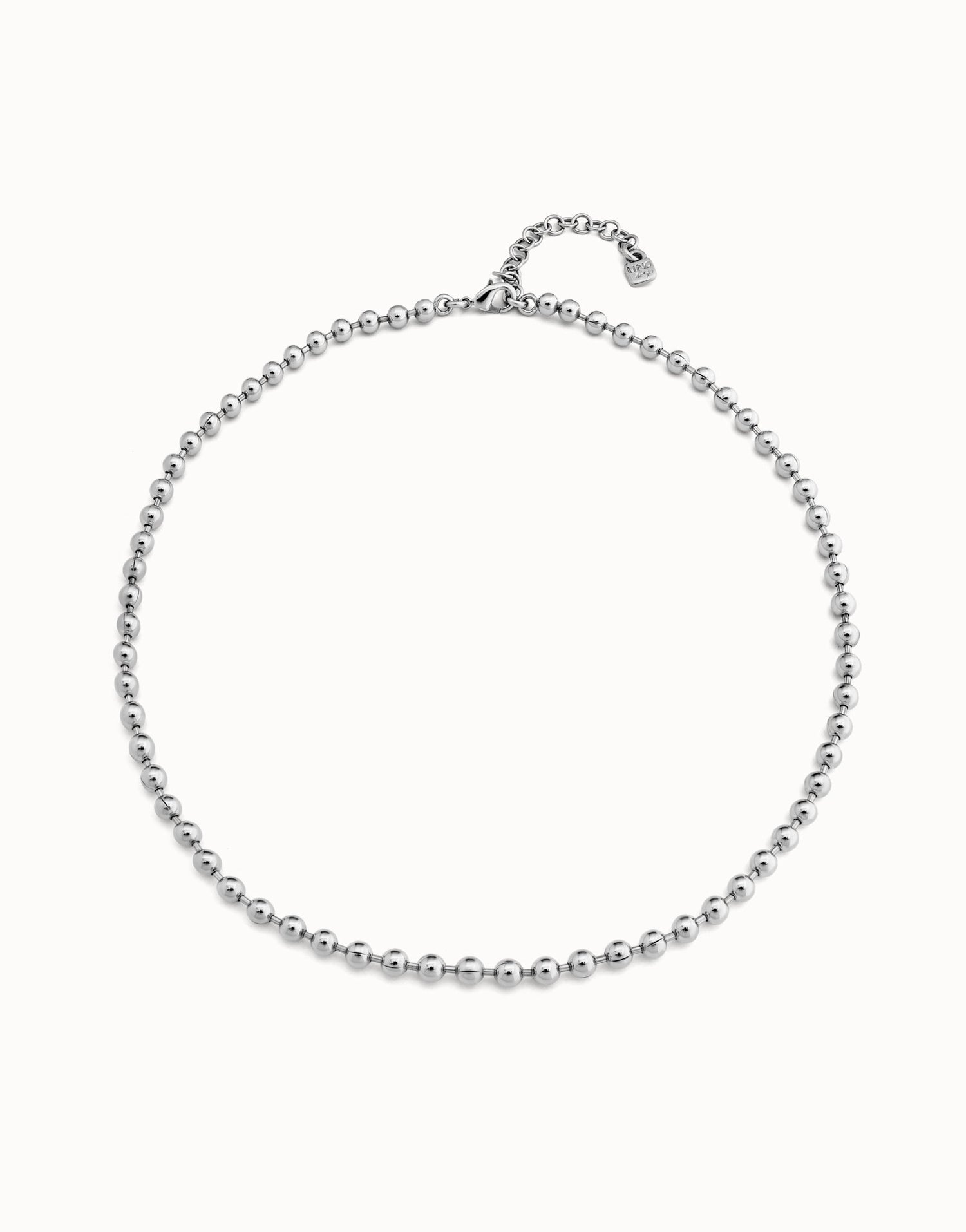 This Beaded Chain Necklace by UNOde50 is a versatile and refined accessory, featuring small sterling silver-plated links and an extensible carabiner clasp. Handmade in Spain, it reflects meticulous craftsmanship and allows for customization by pairing with charms from the Personalización collection. Perfect for layering or wearing alone, it conveys elegance, individuality, and contemporary sophistication. Its delicate yet resilient design ensures everyday wearability while maintaining a polished, artisanal finish, making it an essential piece for those seeking both modern style and timeless UNOde50 quality.