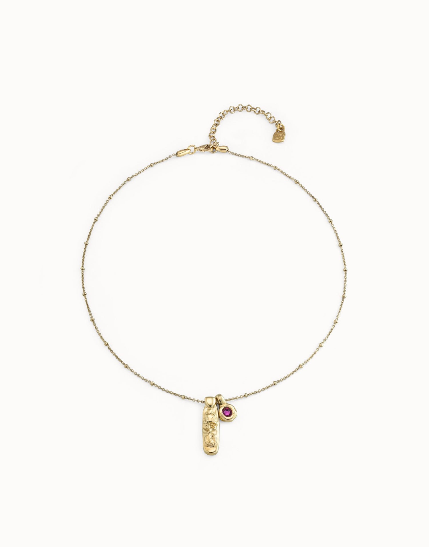 This BuddhaGreen Necklace by UNOde50 features a delicate thin gold-plated chain with two exquisite faceted crystal charms, designed for confident urban women. Handmade in Spain, it embodies elegance, sophistication, and contemporary flair. Its refined design allows versatility for layering or solo wear, highlighting artisanal craftsmanship and subtle attention to detail. The luminous crystals add a touch of vibrancy while the gold-plated chain ensures a luxurious finish. Inspired by individuality and self-expression, this necklace conveys style, empowerment, and modern aesthetics, reflecting UNOde50’s dedication to creating high-quality handcrafted jewelry that balances contemporary design with refined elegance.