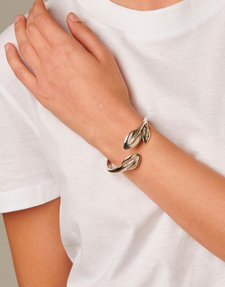 This Helena Bracelet by UNOde50 is a rigid, sterling silver-plated piece that embodies modern elegance and artisanal craftsmanship. Handmade in Spain, it balances minimalist design with bold, structured sophistication. Ideal for stacking or wearing alone, the bracelet conveys contemporary style and refined taste. Its polished finish reflects light beautifully, making it a versatile statement accessory suitable for everyday or formal outfits. This piece exemplifies UNOde50’s dedication to high-quality, handcrafted jewelry that combines wearable artistry, contemporary aesthetics, and timeless design, offering a distinctive and sophisticated addition to any jewelry collection.