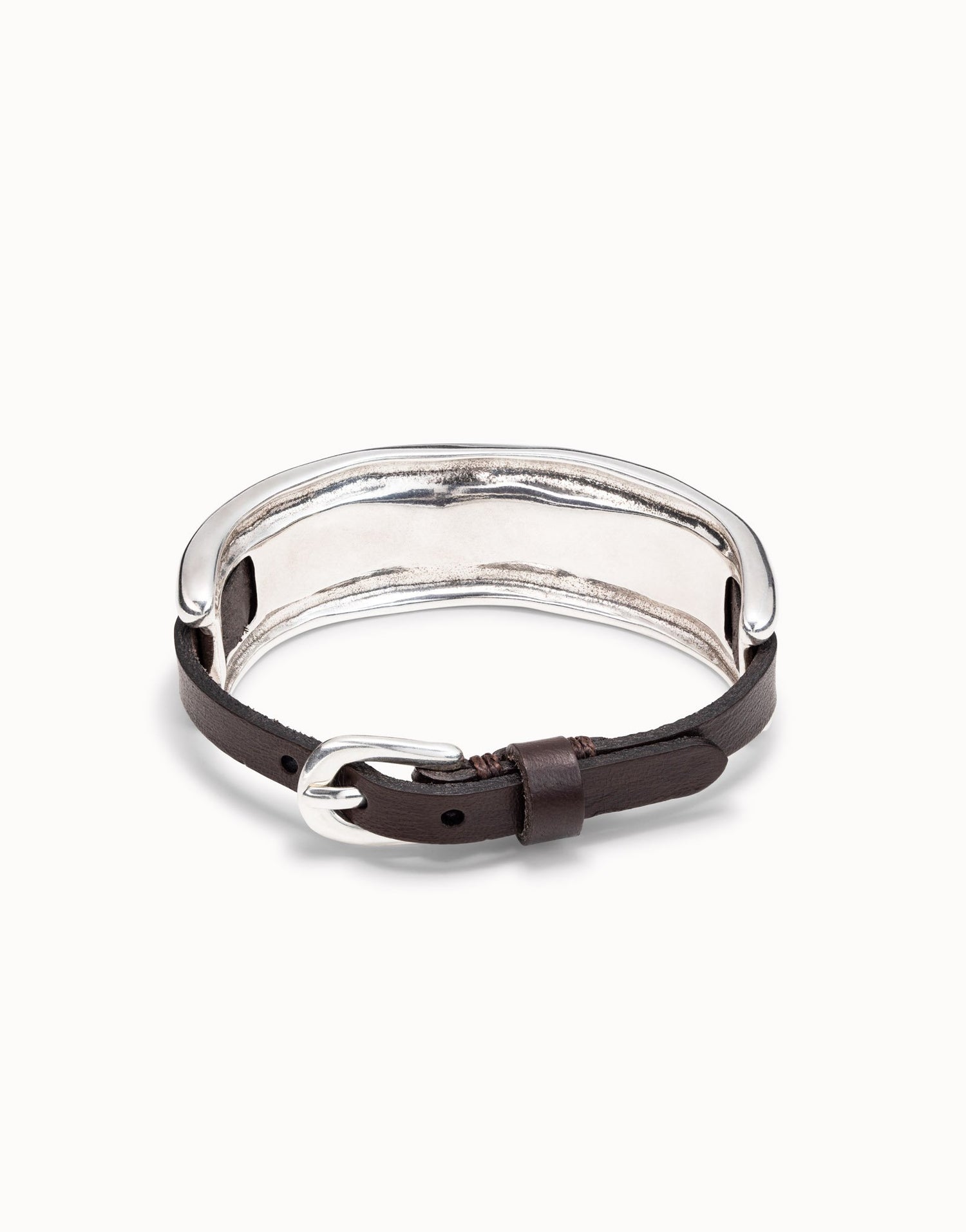 This Total UNO Bracelet by UNOde50 from the Shapes collection features a combination of sterling silver-plated metal and genuine brown leather, handcrafted in Spain. Its adjustable buckle clasp allows for a customized fit, providing comfort and versatility. Perfect for stacking or solo wear, the bracelet embodies artisanal craftsmanship, contemporary style, and sophisticated elegance. The rich textures of leather and polished metal create visual interest and a modern aesthetic. This piece reflects UNOde50’s commitment to high-quality, handmade jewelry that merges functionality, style, and expressive design, offering a versatile, statement accessory for everyday or special occasions.