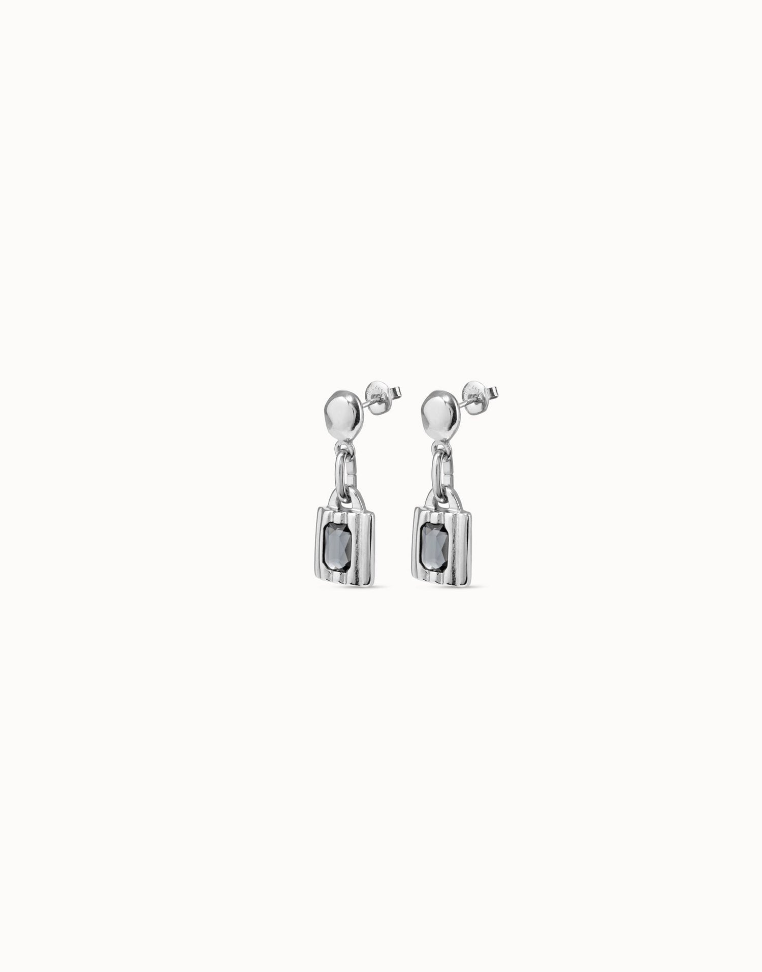 These Padlock Shaped Drop Earrings by UNOde50 from the Confident collection feature sterling silver-plated metal in a padlock shape, decorated with a faceted silver-gray crystal. Handmade in Spain, they symbolize strength, independence, and self-confidence. Perfect for statement wear or layering, the earrings combine artisanal craftsmanship with contemporary style. Their polished finish and detailed design create a versatile, expressive accessory that captures UNOde50’s commitment to high-quality, handcrafted jewelry with symbolic meaning, elegance, and bold visual impact.