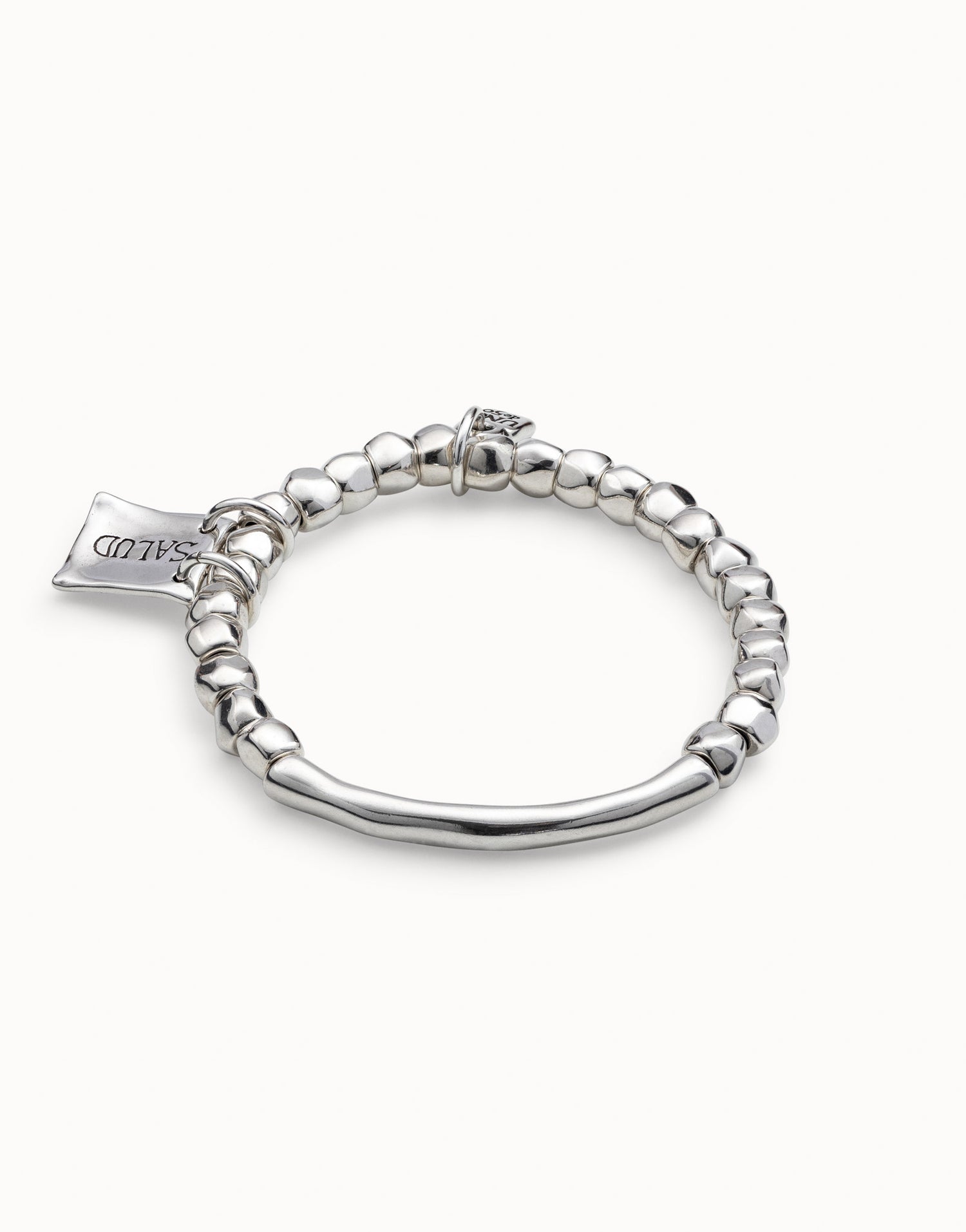 This Beaded Stretch Bracelet with Tubular Piece and Charms by UNOde50 features sterling silver-plated beads and a tubular central piece, handcrafted in Spain. Medium length type ensures a comfortable fit, while its polished finish and iconic design convey elegance, contemporary style, and artisanal craftsmanship. Perfect for stacking or solo wear, the bracelet embodies wearable artistry, subtle symbolism, and high-quality design. Its refined detailing and versatile aesthetic make it ideal for everyday outfits or special occasions, reflecting UNOde50’s dedication to unique, handcrafted jewelry that merges creativity, functionality, and expressive design in a timeless accessory.