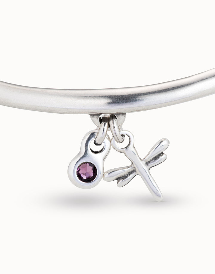 Handcrafted in sterling silver-plated metal with purple faceted crystal and dragonfly charm. Small length type. Minimum perimeter: 16 cm. 100% handmade in Spain.