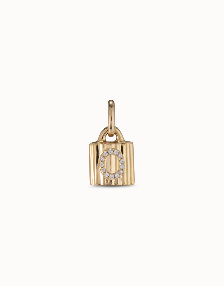18K gold-plated padlock charm with topaz letter O
