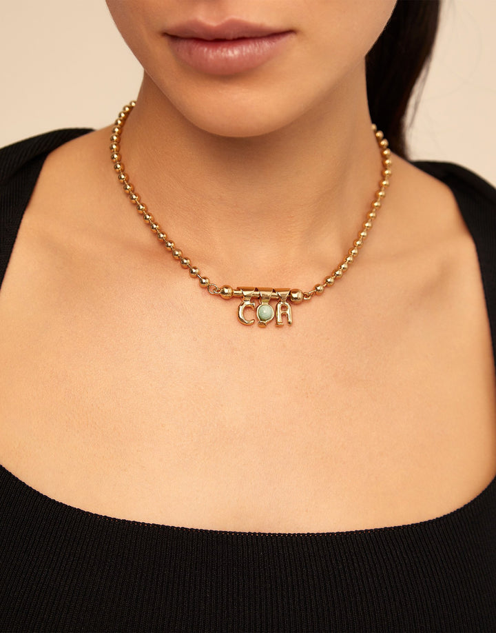 This charm with an amazonite stone by UNOde50 evokes serenity and vibrant natural beauty. Plated in 18K gold, the charm features a turquoise amazonite stone that radiates calming energy and pairs effortlessly with bracelets or chains of any style. Handcrafted with precision in Spain, it embodies both artisanal quality and versatile design, making it a striking accent for layering or a standalone statement piece.