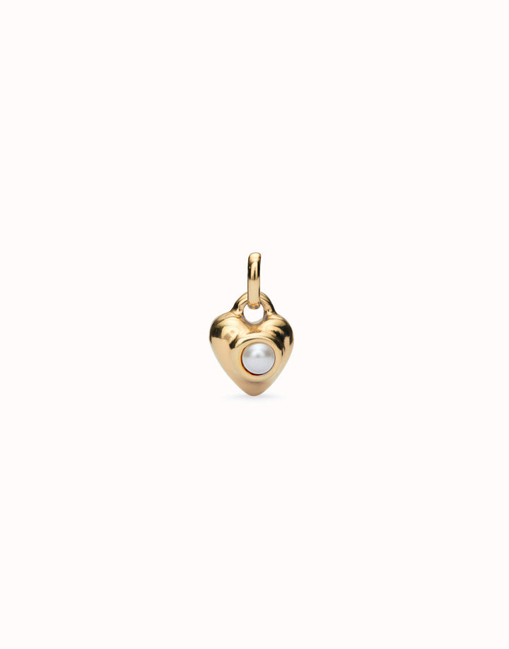 This charm with a pearl by UNOde50 blends timeless elegance with modern artistry. Heart-shaped and plated in 18K gold, it showcases a lustrous white shell pearl, serving as a refined focal point for bracelets or chains. Part of the Hazte UNO collection, the charm embodies self-expression, versatility, and playful sophistication, reflecting the wearer’s confident individuality. Each piece is meticulously handmade in Spain, combining artisanal craftsmanship with contemporary design, making it a luxurious addition to any jewelry ensemble that harmonizes classic elements with a bold, creative spirit.