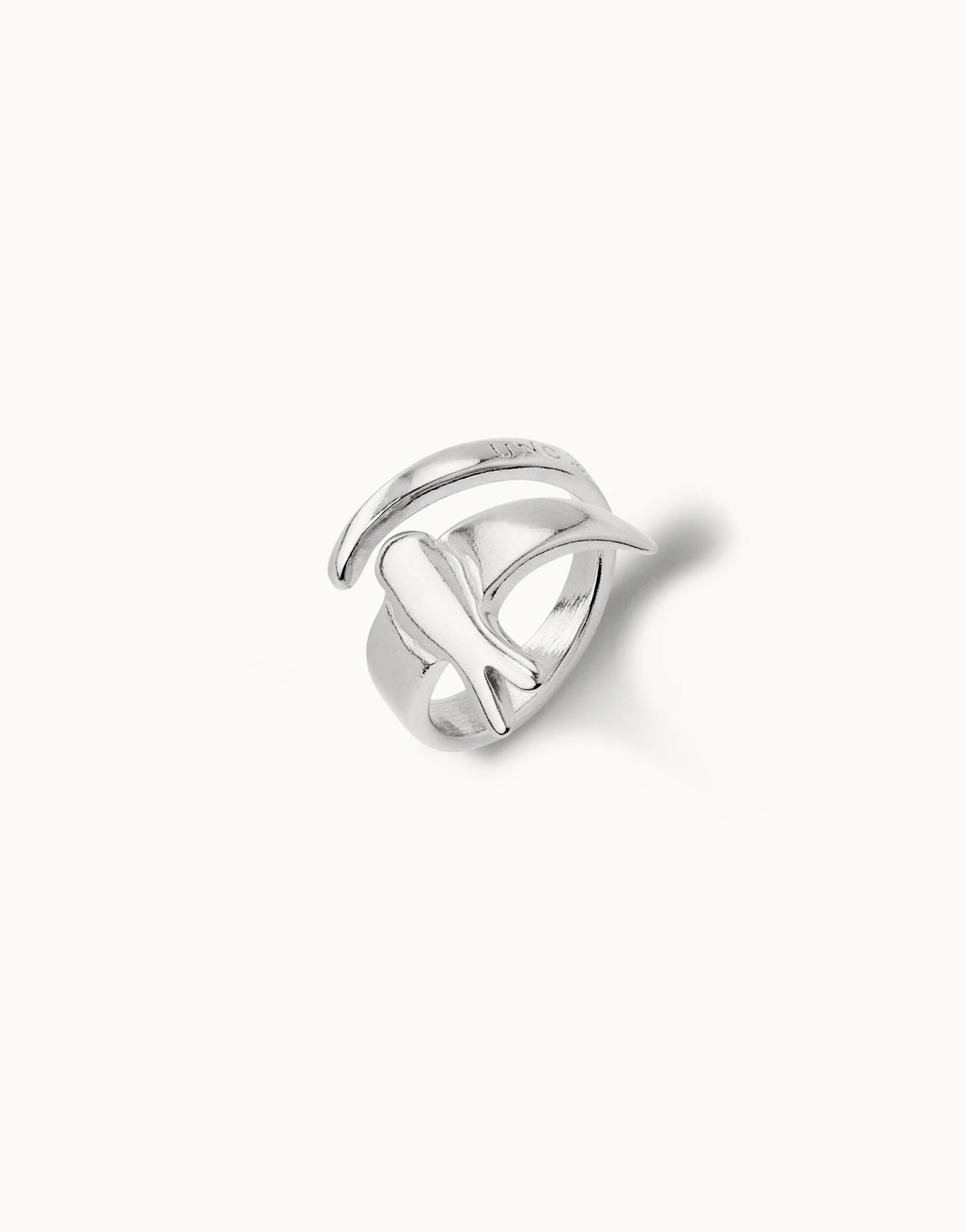 This “Come fly with me” ring by UNOde50 is a striking and bold accessory, crafted in brass clad with silver. Its sleek and contemporary design makes it an expressive statement piece for the wearer who embraces unique, artistic jewelry. Handmade in Spain, the ring reflects the brand’s dedication to meticulous craftsmanship and distinctive aesthetics. Perfect for everyday wear or as a layered accessory, it captures the spirit of movement, freedom, and creativity, embodying a harmonious blend of artisanal tradition and modern design.