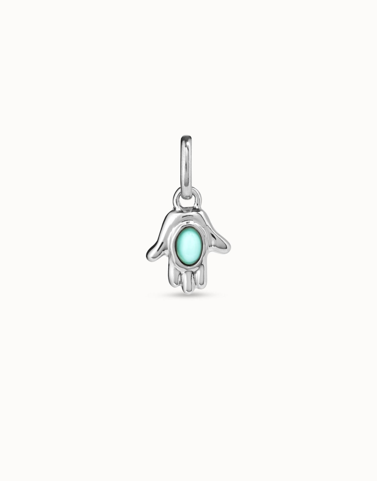 This hand-shaped charm with turquoise Murano glass by UNOde50 is a striking and symbolic piece from the Protected collection. Sterling silver-plated and featuring a central turquoise Murano glass, the charm evokes protection, good luck, and ancestral symbolism, blending tradition with contemporary design. Ideal for layering with chains or wearing solo, it is handcrafted in Spain to ensure exceptional artisanal quality. The unique fusion of natural stone, metallic shine, and cultural inspiration creates a mystical, wearable accessory that embodies both personal meaning and modern elegance, perfect for anyone seeking symbolic and artistic jewelry.