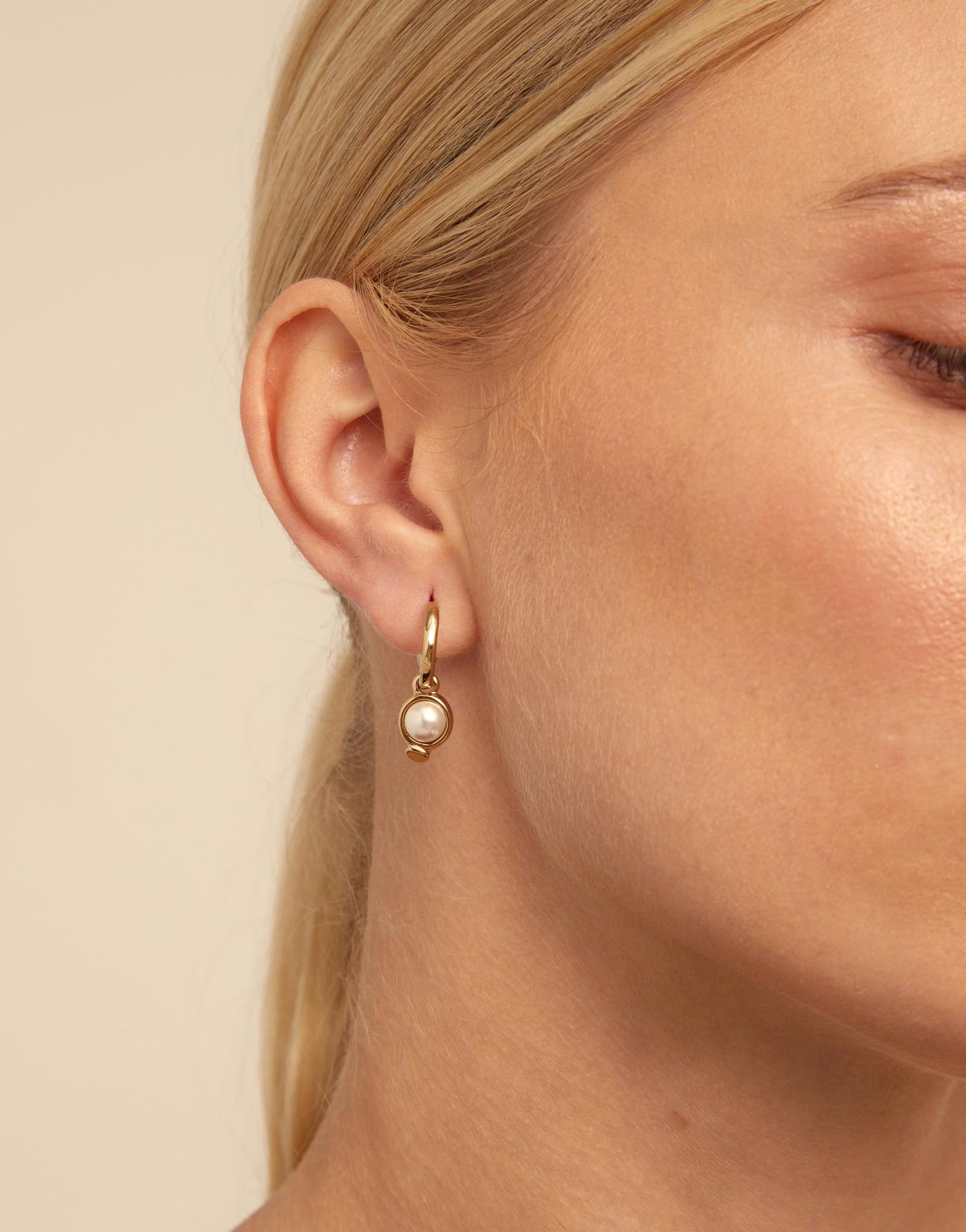 Handcrafted in 18K gold-plated metal with white shell pearl; minimum length 1.2 cm. Made in Spain.