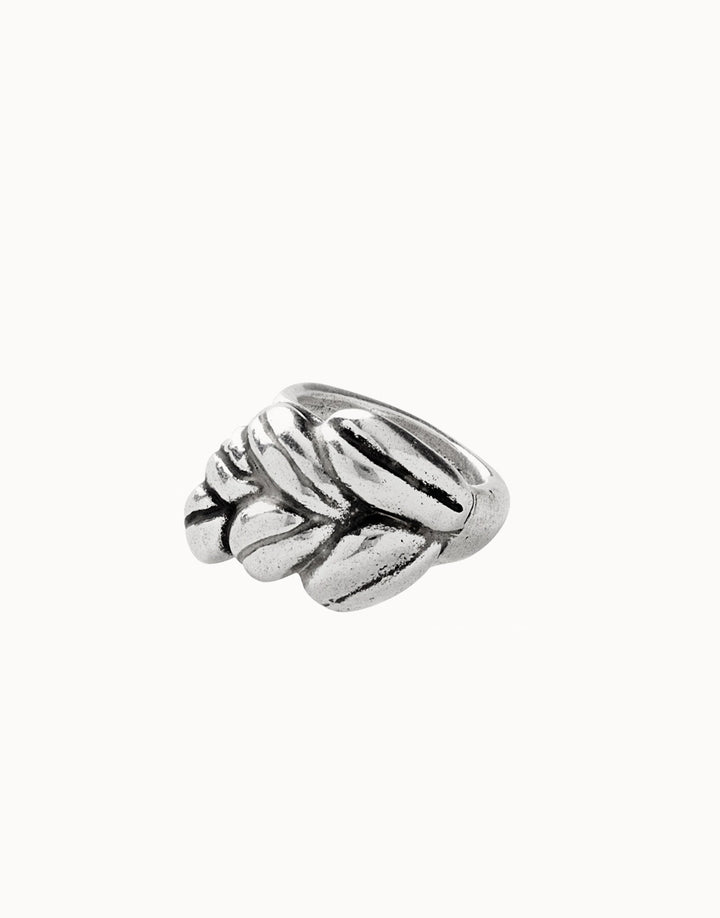 This Rocio Ring by UNOde50 celebrates the natural elegance of the wheat spike motif with a refined, silver-plated structure. Crafted in Spain through a 100% handmade process, it conveys strength while maintaining a fresh, casual aesthetic. Its original design and flowing silhouette make it an ideal piece for stacking or wearing solo, offering a subtle yet sophisticated accent to any outfit. Each ring reflects the brand’s commitment to artisanal craftsmanship and unique design, turning a simple ring into a contemporary statement of individuality and effortless style.
