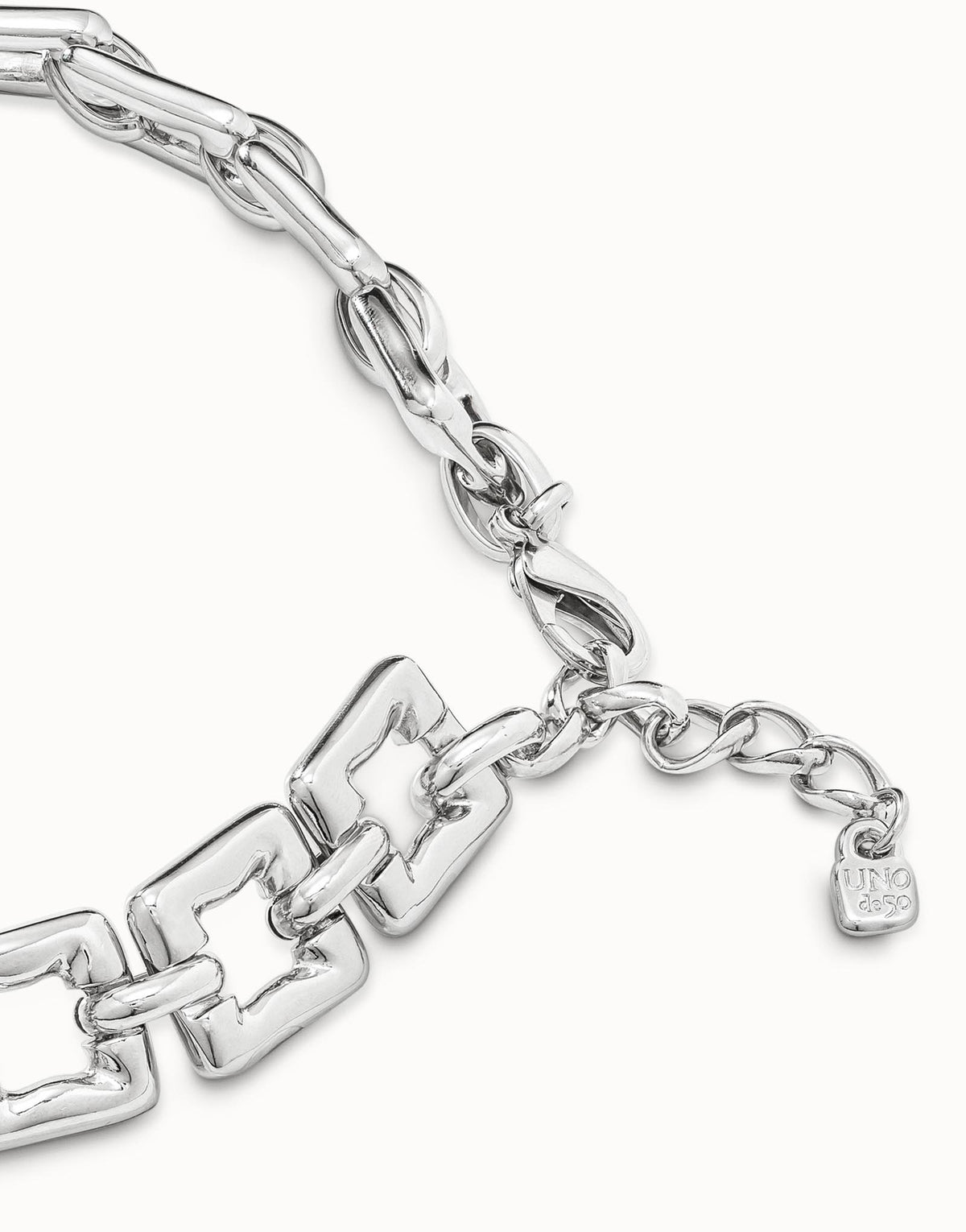 This handcrafted short necklace is made in Spain from a silver-plated metal alloy. It features large, squared links and a lobster clasp, with a minimum length of 40.5 cm and a maximum length of 45 cm.