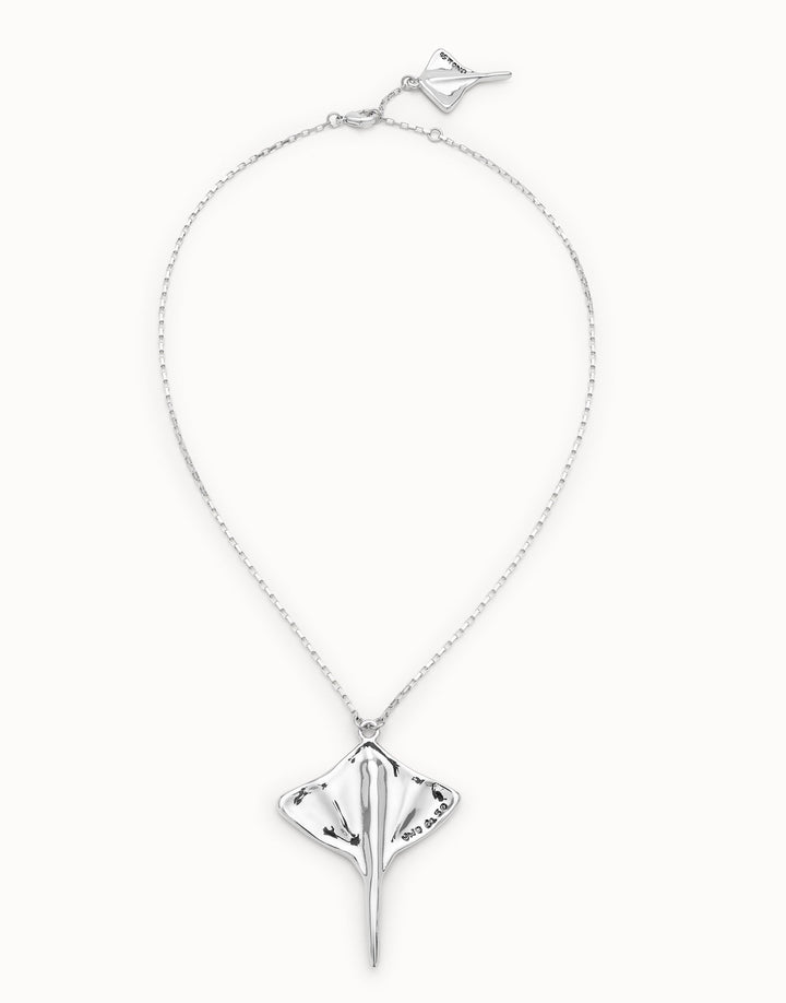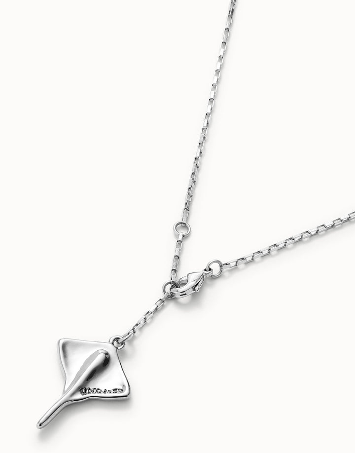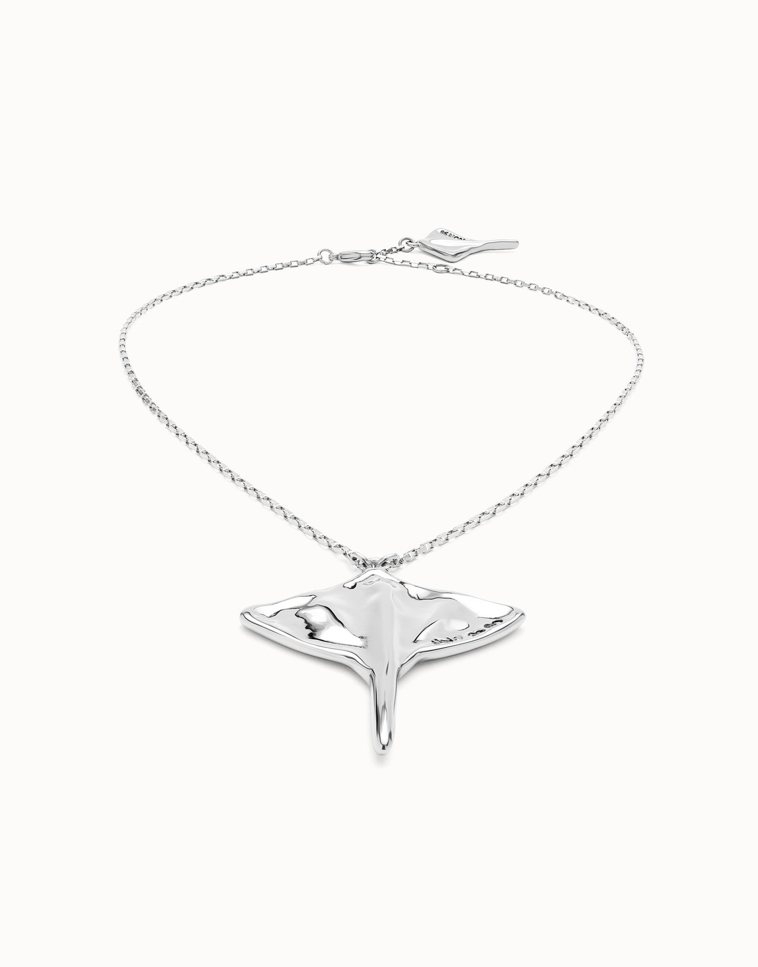 This handcrafted short necklace is from the Ser Majestuosa collection, made in Spain from sterling silver-plated metal. It features a manta ray pendant and has a minimum length of 44 cm and a maximum length of 48 cm.