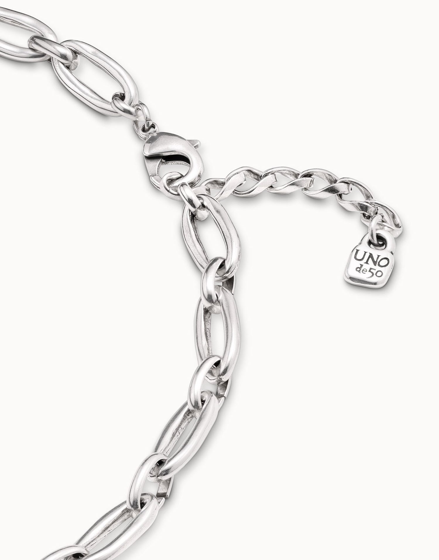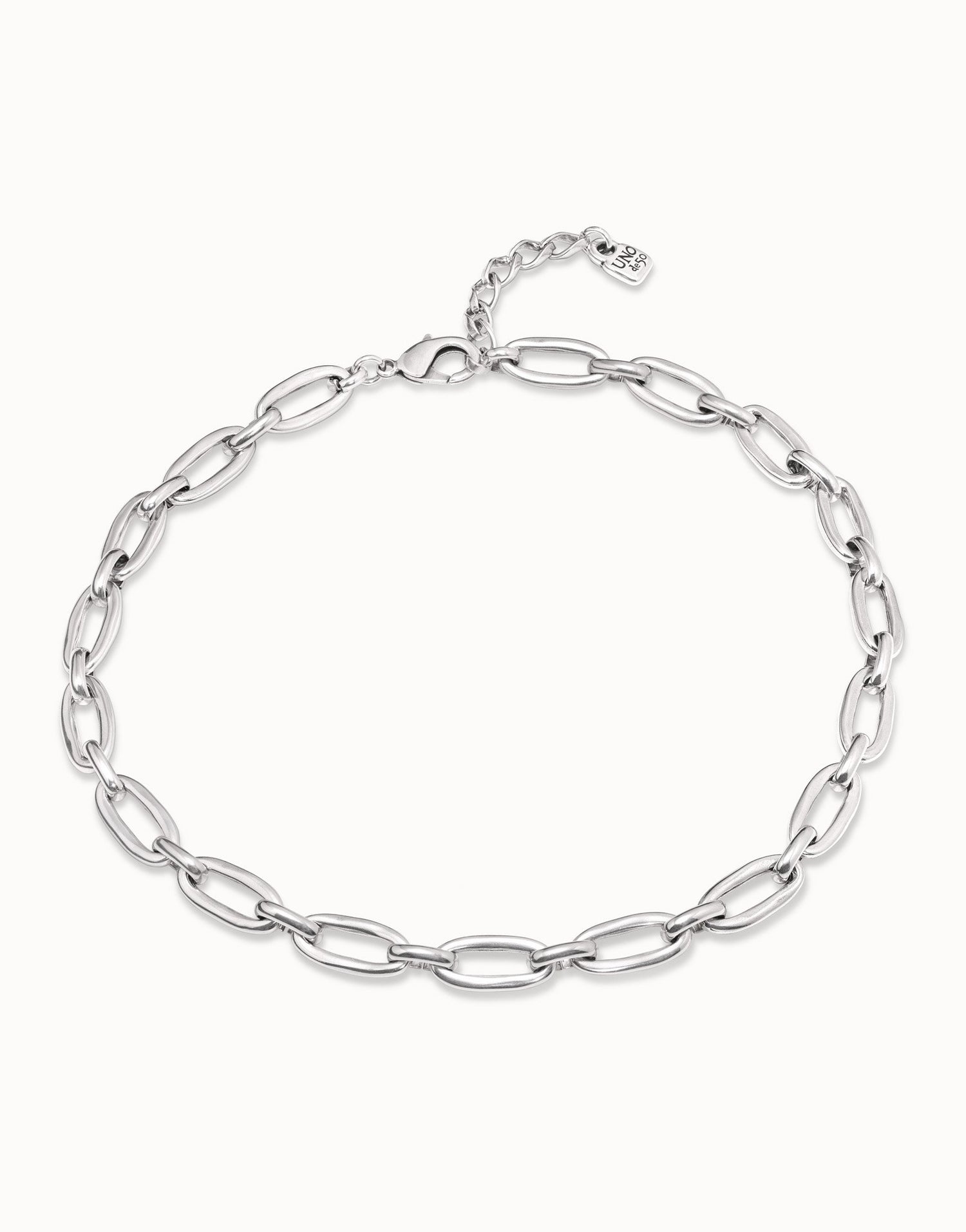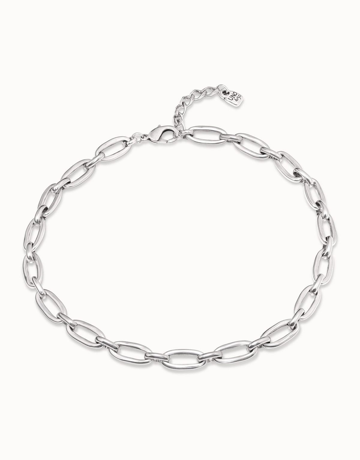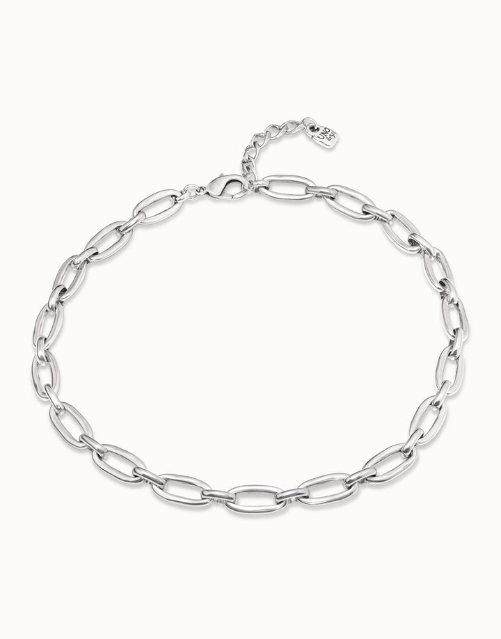 This short necklace by UNOde50 is a luxurious and modern staple. The mid-sized oval links create a contemporary and fluid design that drapes beautifully around the neck. This necklace is a testament to understated elegance and can be effortlessly styled with any outfit. It's a versatile accessory perfect for adding a touch of timeless sophistication to your look, whether worn alone or layered with other pieces for a bolder statement.