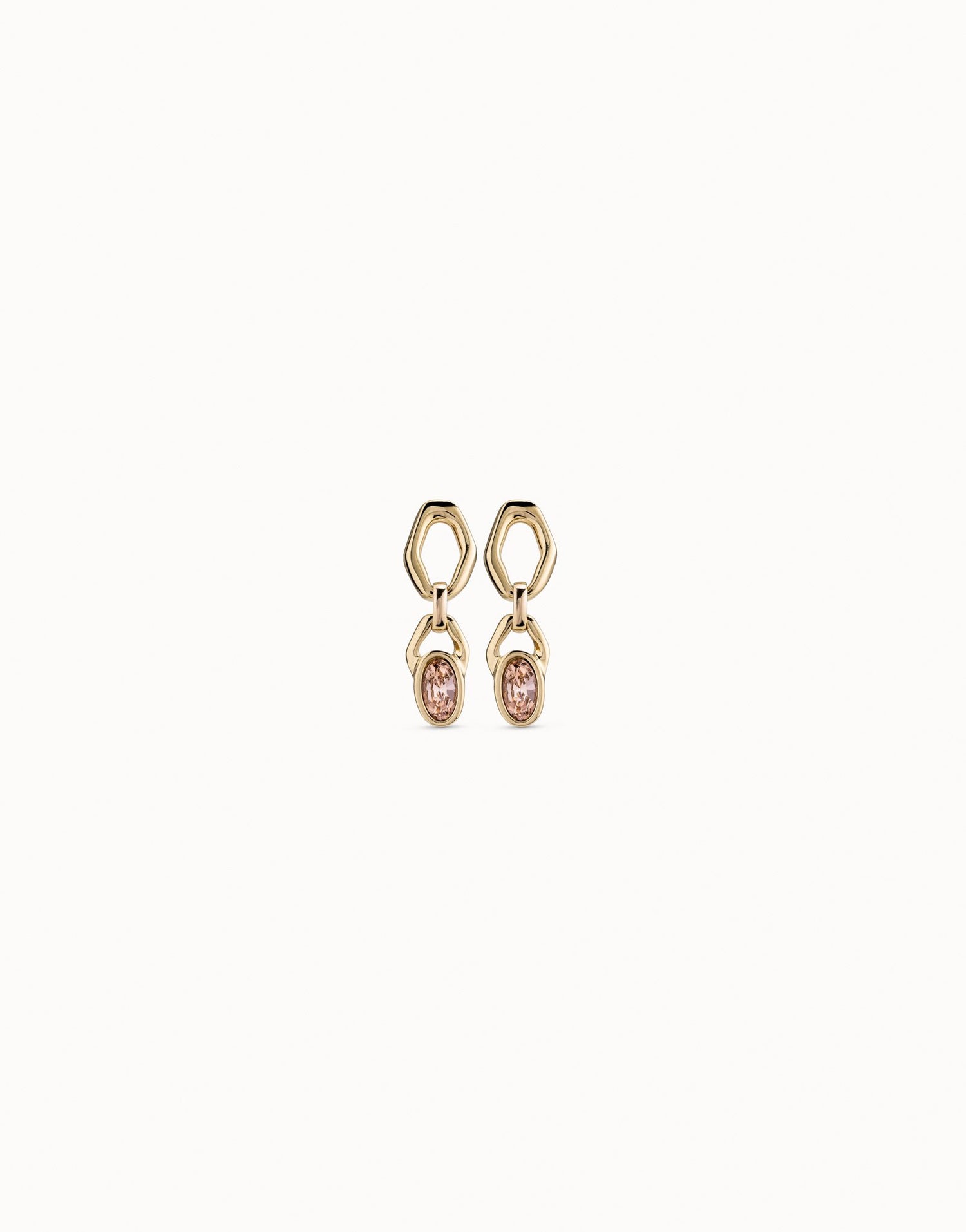 This pair of handcrafted earrings is made in Spain from 18k gold-plated cast metal and features diamond-shaped links with faceted crystals. They are a short drop style with a minimum length of 3.6 cm.