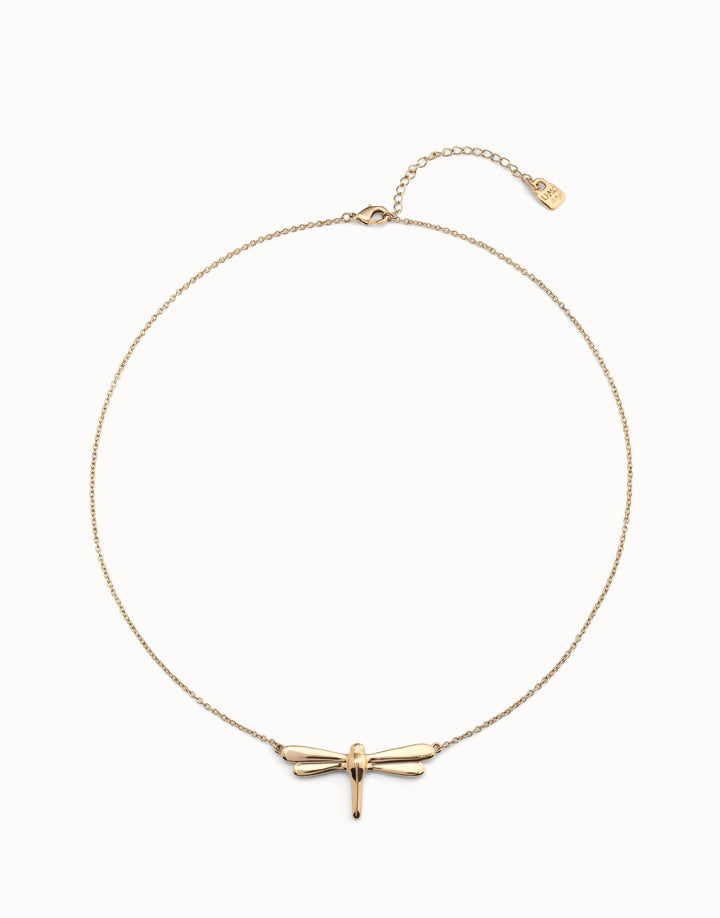 This necklace by UNOde50 is an exquisitely elegant piece that feels both delicate and impactful. The fine golden-plated chain is gracefully complemented by a detailed dragonfly pendant, a timeless symbol of change and transformation. This necklace is an ideal everyday accessory for those who appreciate understated luxury and a touch of nature-inspired beauty. Its minimalist design makes it perfect for layering or wearing alone to add a hint of personal charm and symbolic meaning to your look.