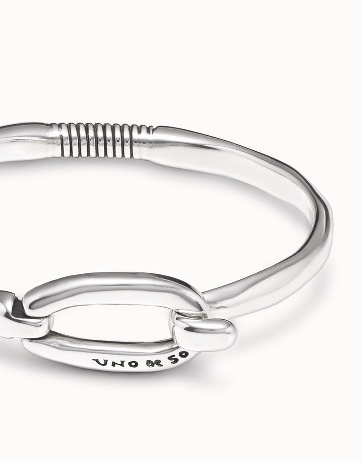 This Wowvni bracelet by UNOde50 is a unique and bold accessory with a contemporary, industrial-chic aesthetic. The central link design creates a strong, structured look, while the hidden spring and hook clasp provide both function and style. This bracelet is for the person who loves distinctive, modern designs and isn't afraid to make a statement. It is a versatile and striking piece that adds an element of confident, artistic flair to any everyday ensemble.