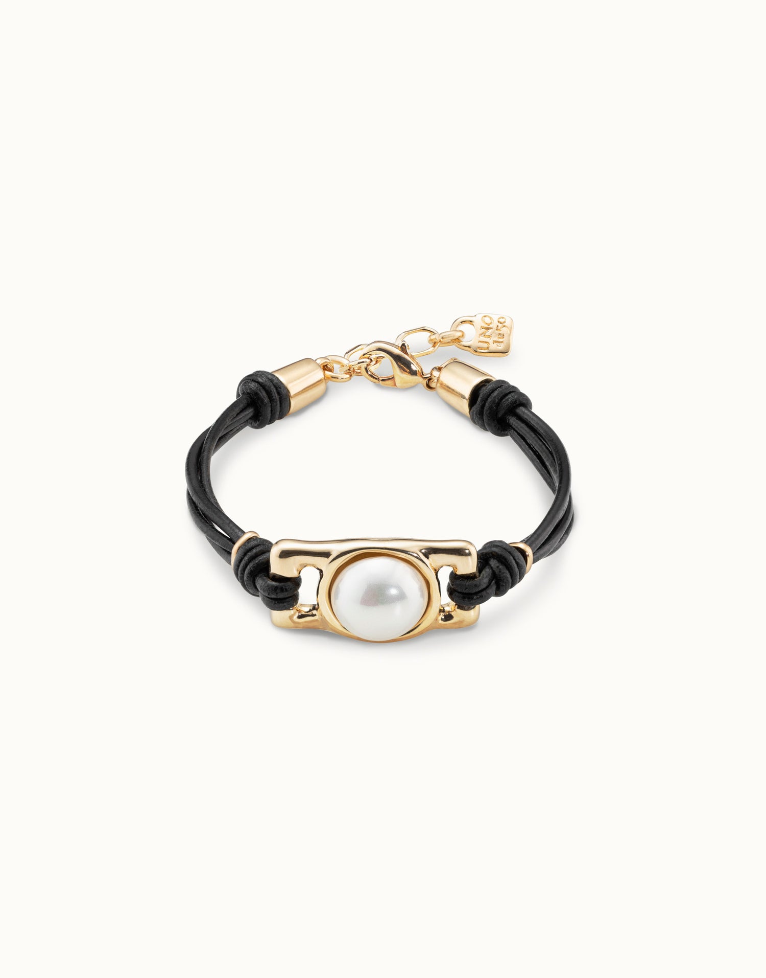 This brown leather bracelet by UNOde50 is a rustic and elegant piece that combines natural texture with a modern design. The brown leather band provides an earthy, organic feel, while the central rectangular white bead and pearl create a sophisticated contrast. This bracelet symbolizes a harmonious blend of rugged and refined aesthetics. It's a versatile and personal accessory, perfect for adding a touch of bohemian luxury to an everyday outfit or as a meaningful gift for a loved one.