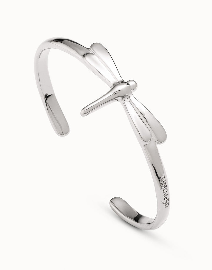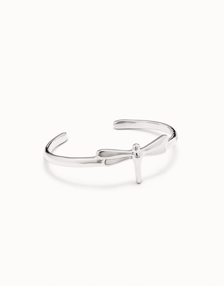 This handcrafted bracelet is made in Spain from a unique silver-plated brass. It has an open design with a central dragonfly and a minimum perimeter of 15.7 cm.