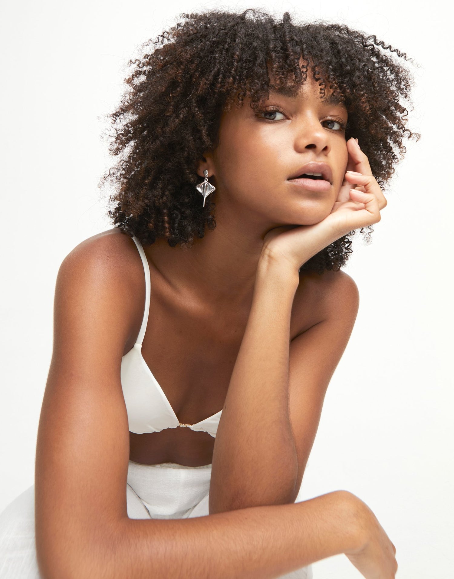 This pair of handcrafted earrings is from the Ser Majestuosa collection, made in Spain from sterling silver-plated metal. They are a short drop-style earring.