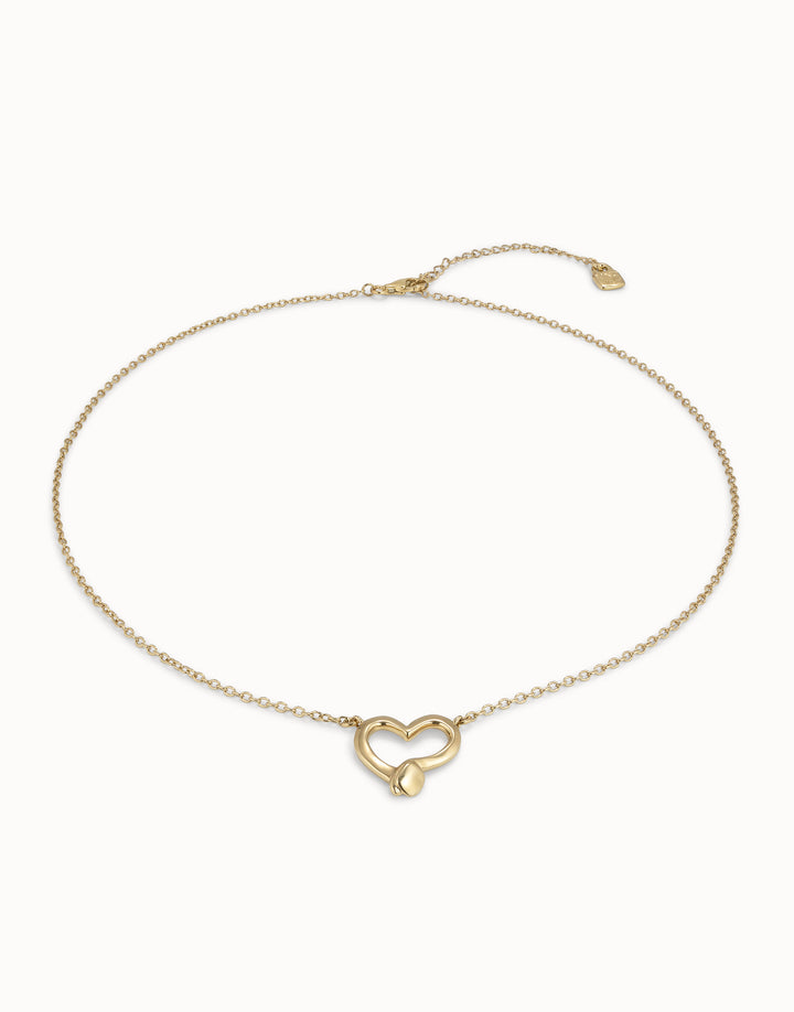 This Straight to the Heart necklace by UNOde50 is a unique and playful piece that combines an industrial-chic aesthetic with a touch of romance. The chain culminates in the iconic nail heart pendant, a flagship UNOde50 icon. This necklace is for the person who wants to make a bold, personal statement. It's a versatile and powerful accessory that adds a touch of rebellion and sophistication to any everyday look.
