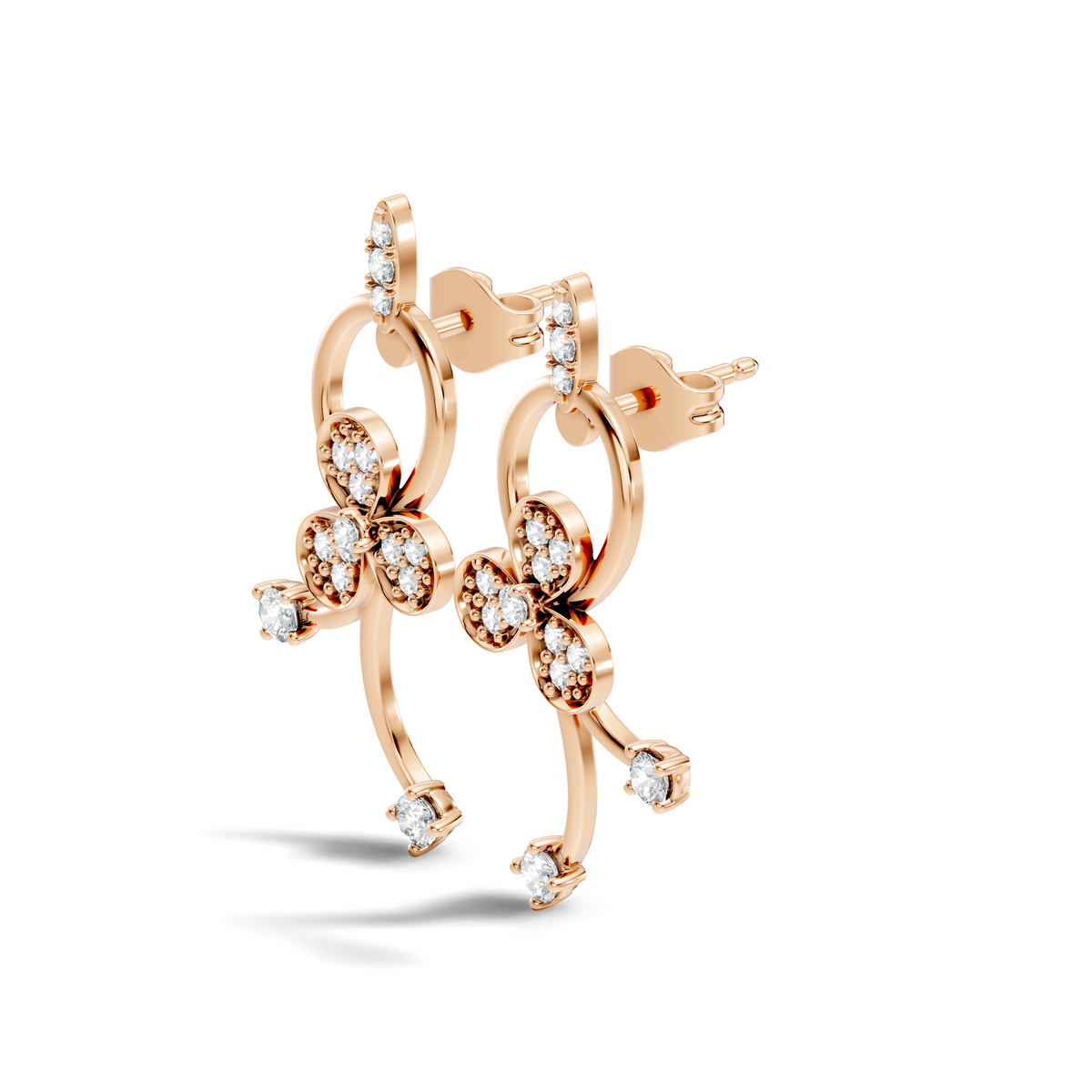 Handcrafted in 10K rose gold with 2.50Ct marquise-cut lab-grown diamonds and 0.16Ct round-cut lab-grown and natural diamonds. Cluster stud design, polished finish, secure push-back closure. Customizable in 10K, 14K, or 18K yellow, rose, or white gold. Customize any piece in 10K, 14K, or 18K yellow, rose, or white gold, with your choice of lab-grown or natural diamonds where applicable.