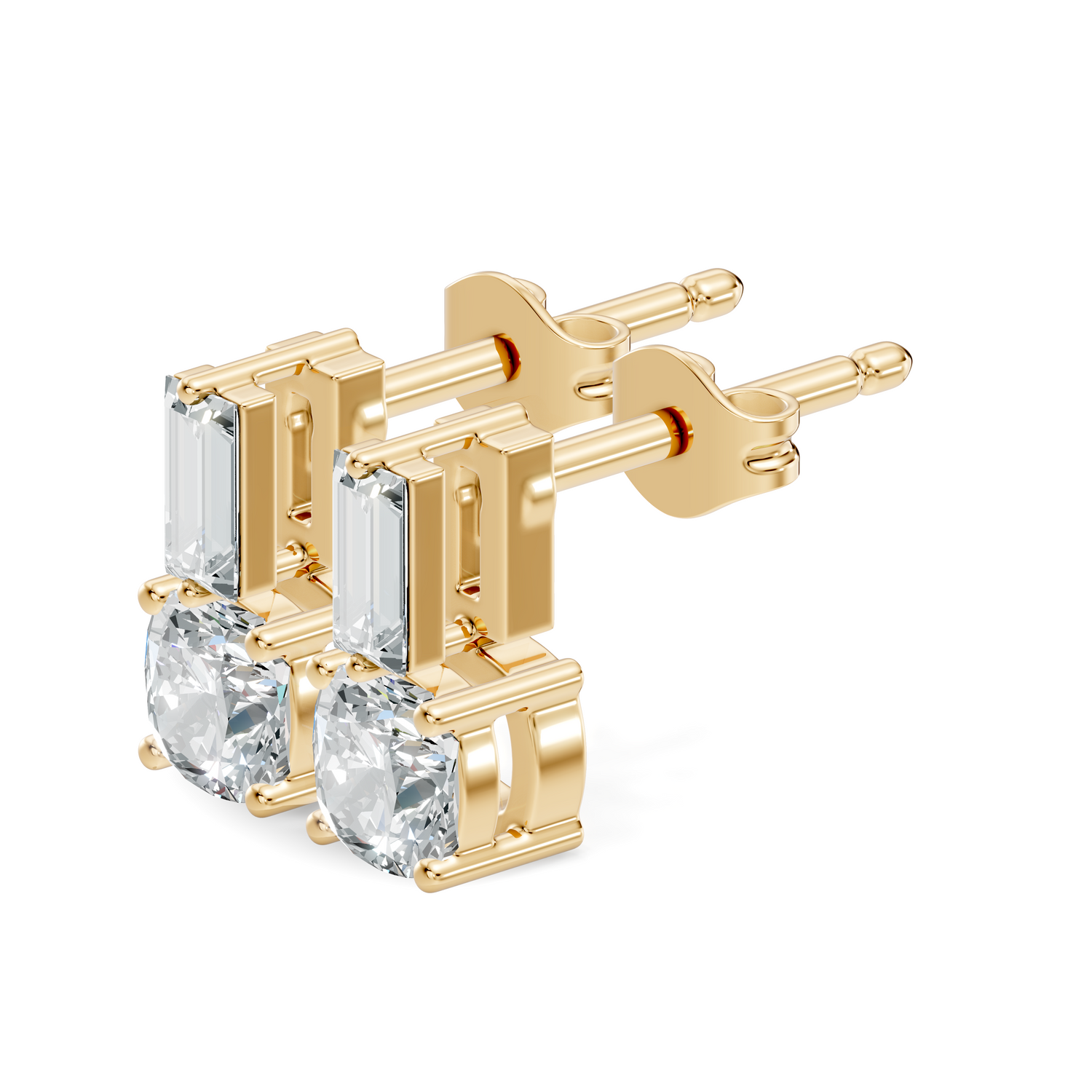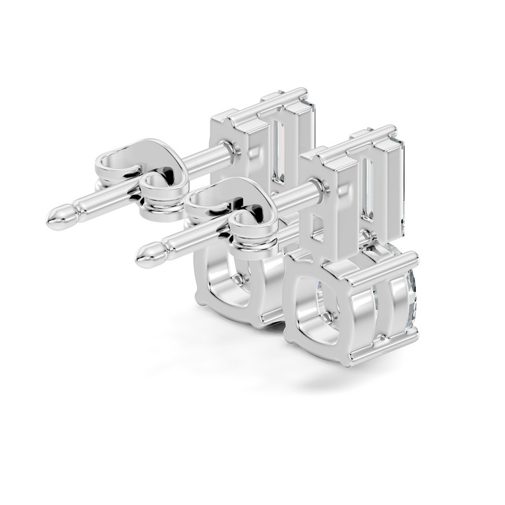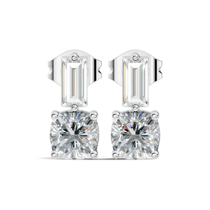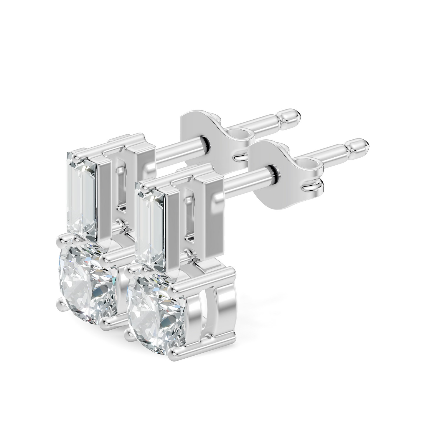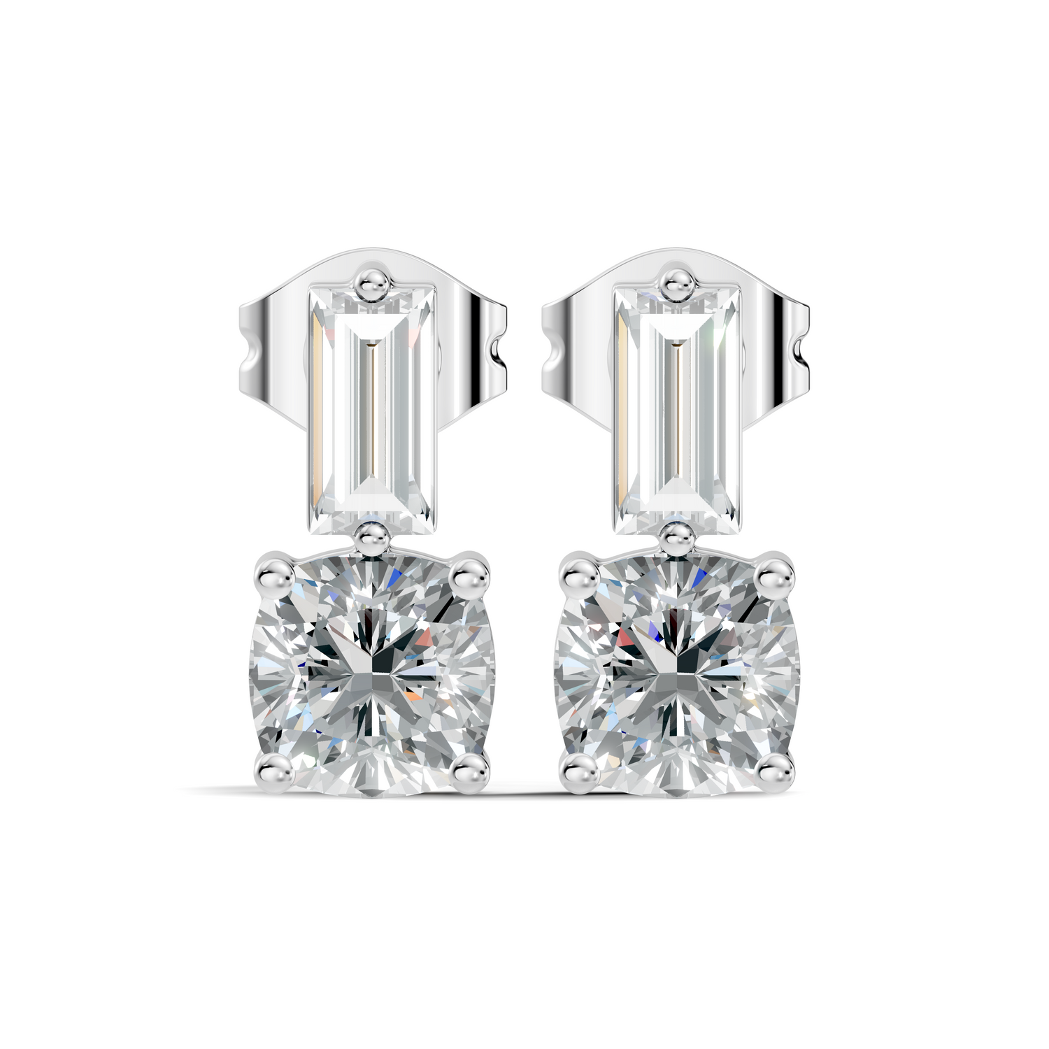 Handcrafted in 10K white gold with 4.12Ct marquise-cut and 0.72Ct baguette and cushion-cut lab-grown diamonds. Vintage cluster stud design, polished finish, secure push-back closure. Customizable in 10K, 14K, or 18K yellow, rose, or white gold. Customize any piece in 10K, 14K, or 18K yellow, rose, or white gold, with your choice of lab-grown or natural diamonds where applicable.