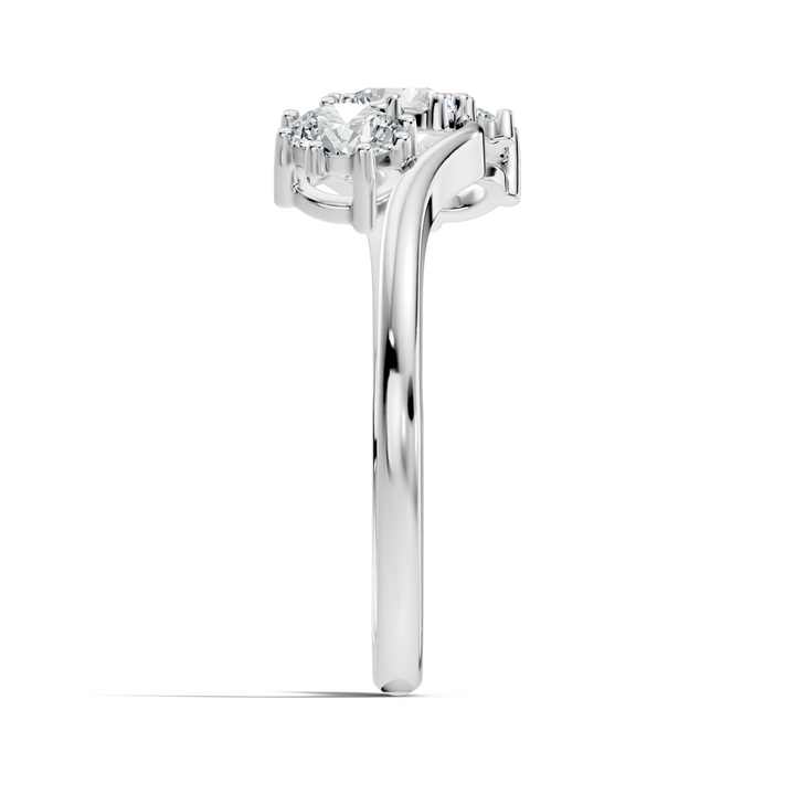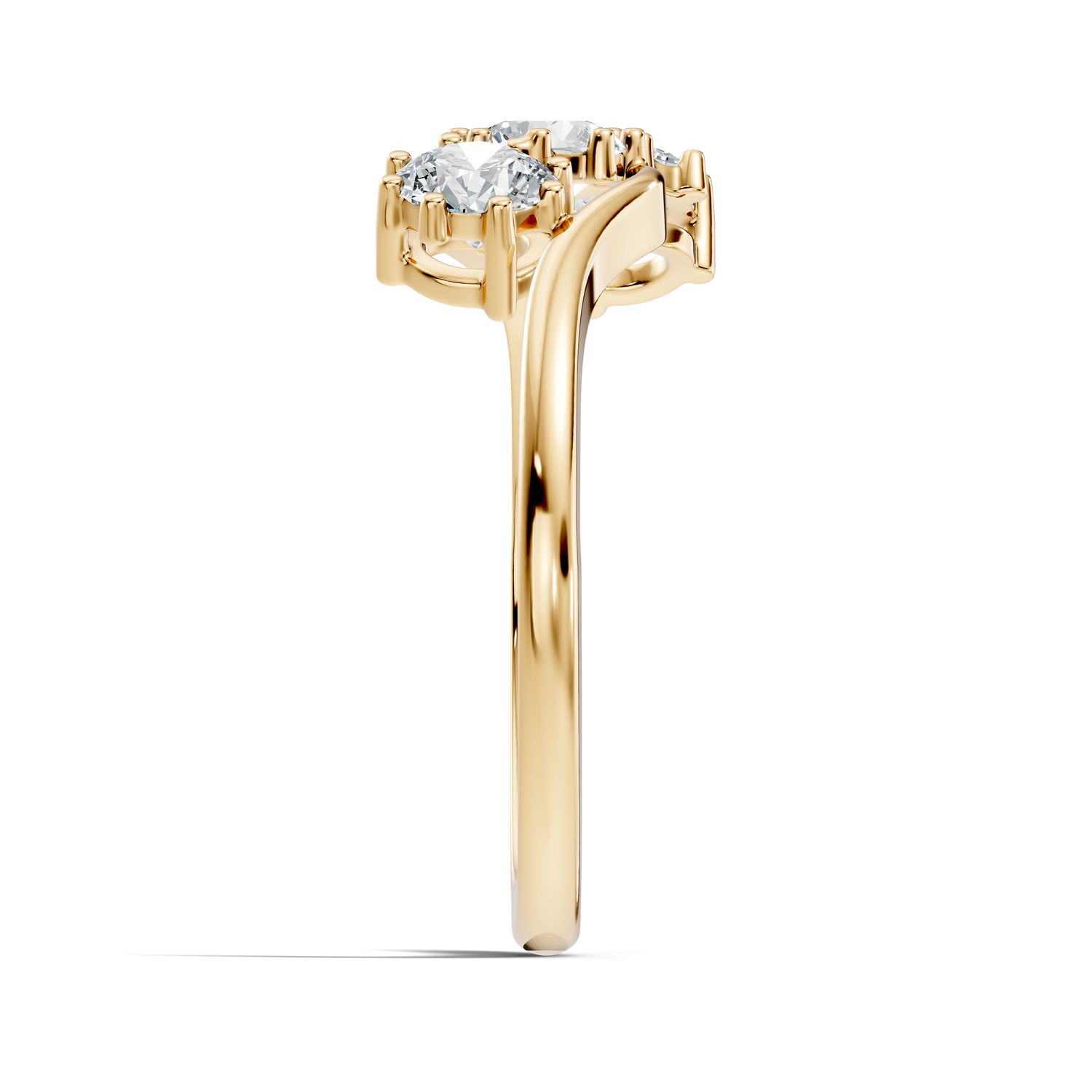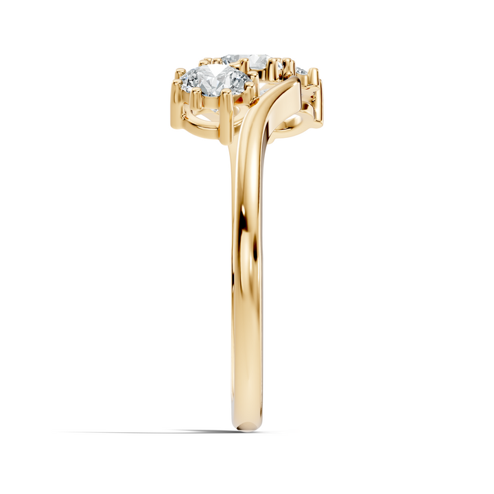 Handcrafted in 10K rose gold with a 3.45Ct emerald-cut lab-grown diamond cluster, featuring three round cut accent diamonds. Ring size adjustable; polished finish. Customize any piece in 10K, 14K, or 18K yellow, rose, or white gold, with your choice of lab-grown or natural diamonds where applicable.
