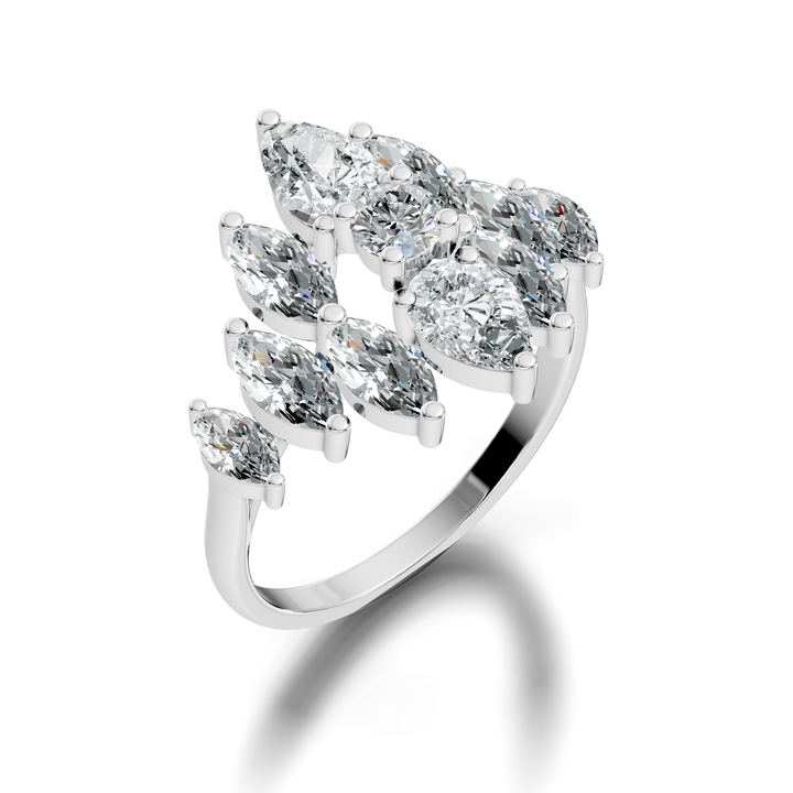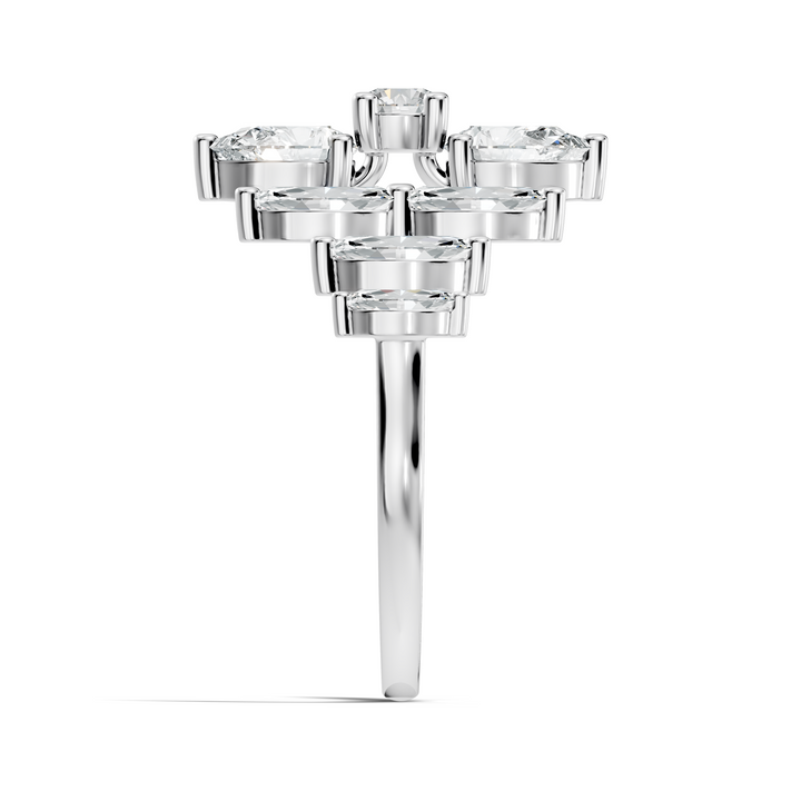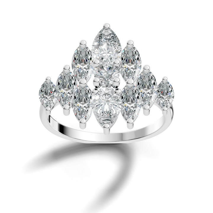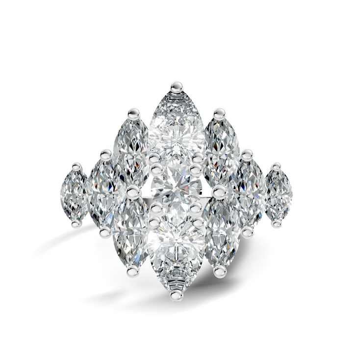 This 3.17Ct Marquise-Cut Lab-grown Diamond Cluster Ring by High Carat combines timeless elegance with minimalist vintage charm. Featuring marquise, round, and pear-cut diamonds totaling 3.17 Ct, the handcrafted design captures brilliance from every angle. Perfect for special occasions, everyday wear, or as a bridesmaid’s gift, it symbolizes love, craftsmanship, and refined style. Lightweight yet dazzling, the ring balances antique-inspired artistry with contemporary sophistication, making it versatile and cherished. A stunning piece that highlights exceptional lab-grown diamond sparkle, it enhances any jewelry collection with grace, sophistication, and enduring beauty.