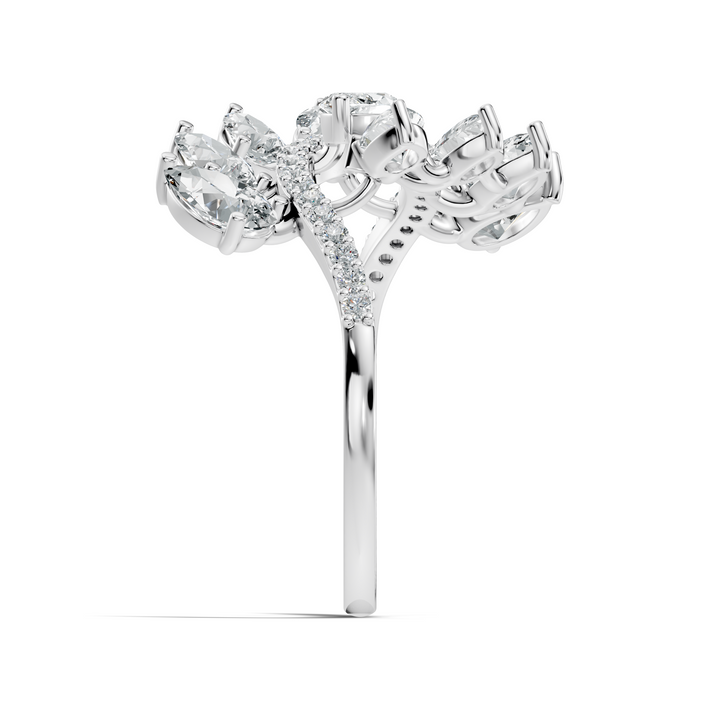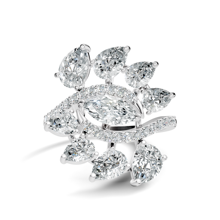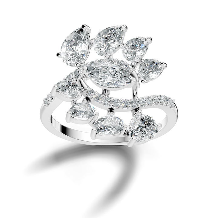 This 2.30Ct Marquise-Cut Lab-grown Diamond Vintage Ring by High Carat exudes romantic sophistication. Featuring a harmonious arrangement of marquise, pear, and round-cut diamonds, the handcrafted design reflects brilliance and elegance. Perfect for engagements, weddings, or celebratory occasions, it embodies timeless charm and refined artistry. The vintage-inspired detailing and dainty silhouette provide a comfortable yet stunning fit, making it a versatile statement piece. Designed for women who appreciate classic beauty with a modern touch, this ring celebrates love, craftsmanship, and the luminous allure of lab-grown diamonds in a sophisticated and unforgettable design.