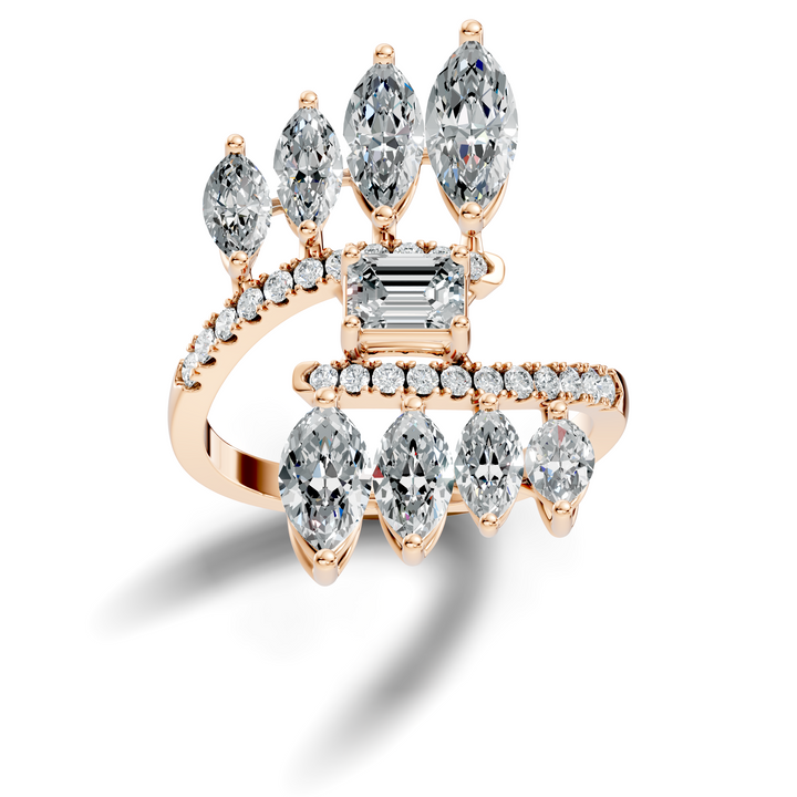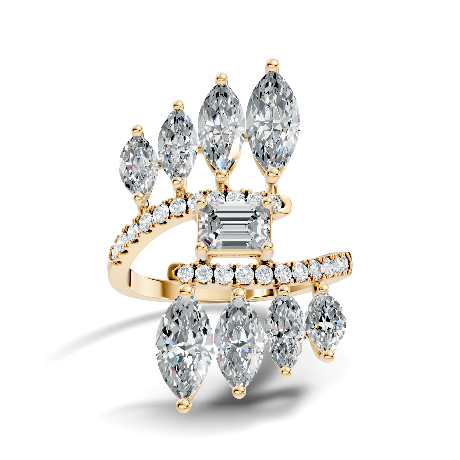 This 2.30Ct Marquise-Cut Lab-grown Diamond Vintage Ring by High Carat embodies timeless elegance with sophisticated charm. Featuring emerald, marquise, and round-cut diamonds arranged in a vintage-inspired design, the handcrafted ring captures brilliance and sparkle from every angle. Ideal for engagements, anniversaries, or as a cherished heirloom, it symbolizes enduring love and refined artistry. The delicate prong setting highlights each stone while ensuring comfort and dainty appeal. A versatile and graceful statement piece, this ring enhances any jewelry collection with luxurious sparkle and classic sophistication, celebrating the artistry and beauty of lab-grown diamonds.