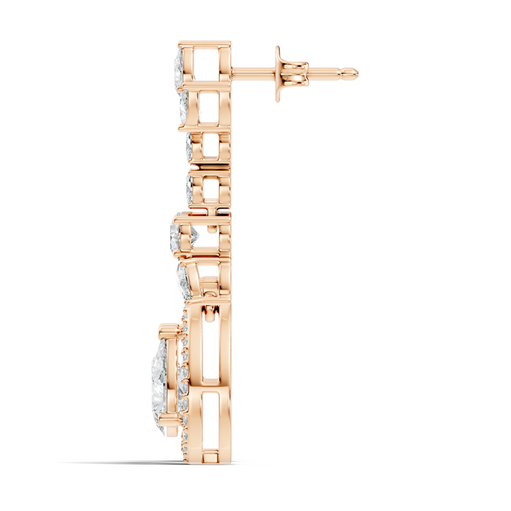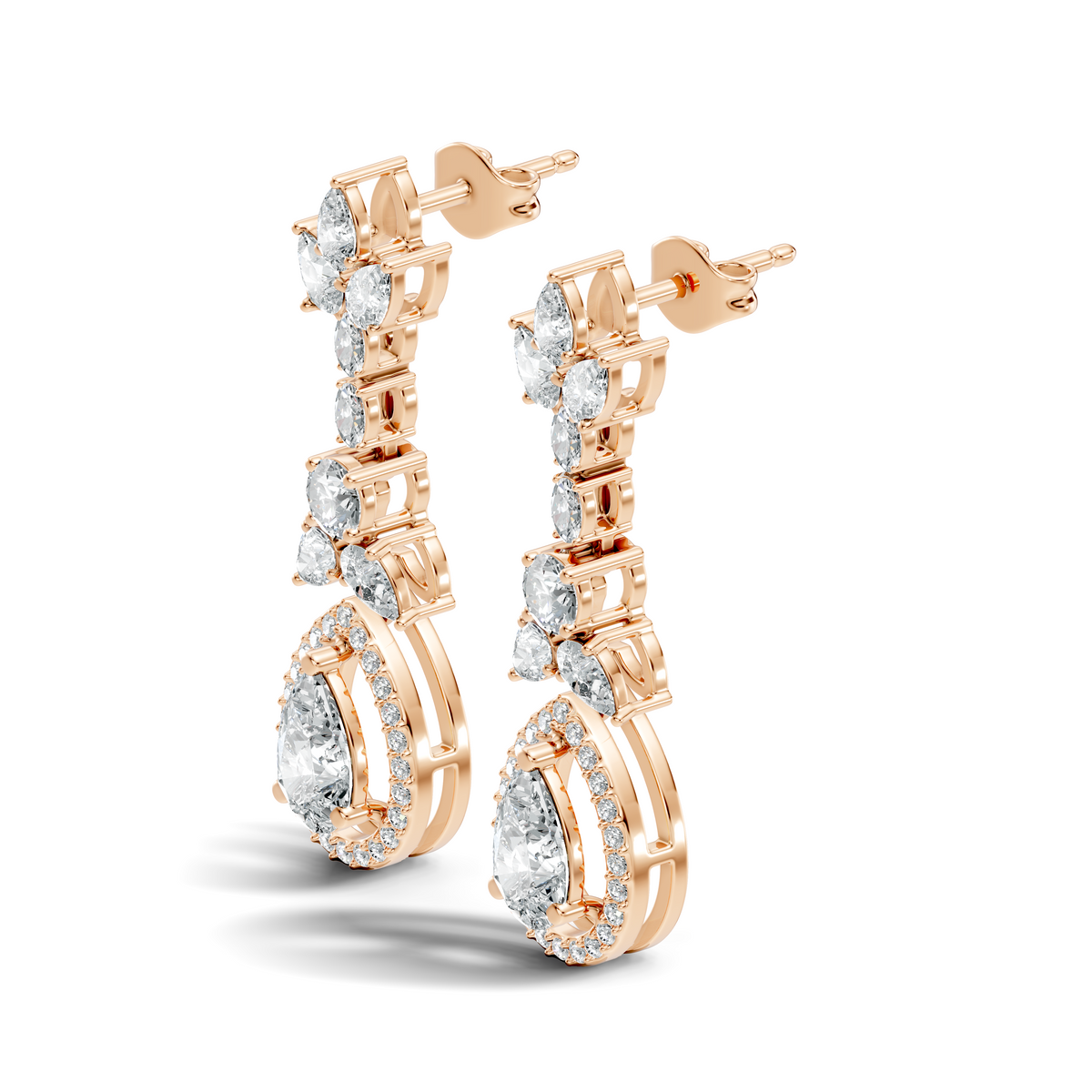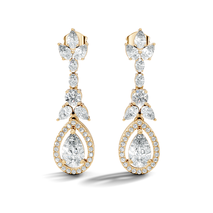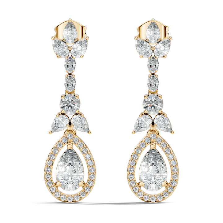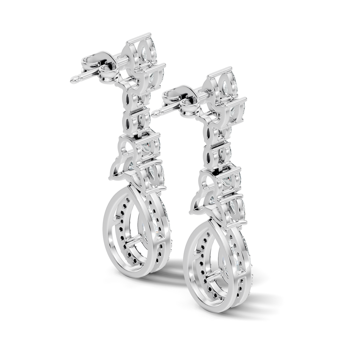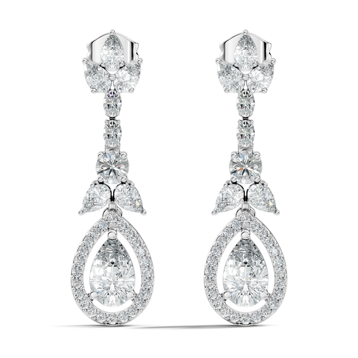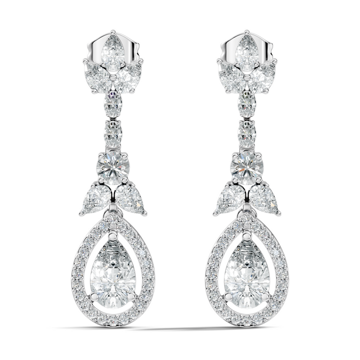Handcrafted in 10K white gold, featuring lab-grown round, pear, and oval-cut diamonds, total carat weight 4.83 Ct, drop stud prong setting, friction back studs. Customize any piece in 10K, 14K, or 18K yellow, rose, or white gold, with your choice of lab-grown or natural diamonds where applicable.